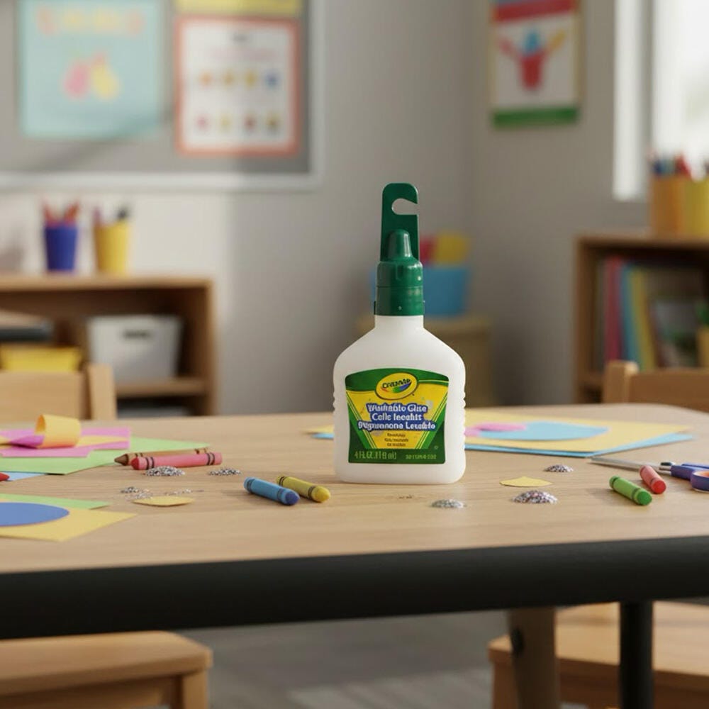 Crayola Washable School Glue is great for paper, fabric, cardboard, wood, and ceramics. No run formula makes the glue stay where you put it. Washable, non-toxic, dries clear and does not crack.Features