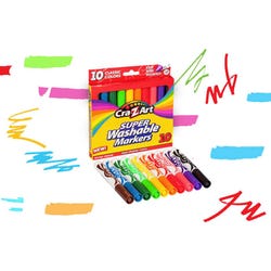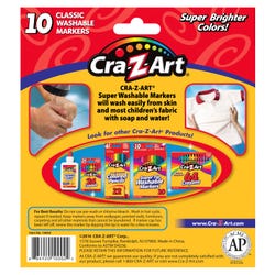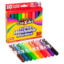 With this versatile set of Cra-Z-Art Super Washable Markers, you can make any art project pop with vibrant colors! This 10-count marker set includes super bright, classic, and bold rainbow colors that are sure to delight. Simply adjust the marker's angle to create thick or thin lines using the broadline tips. Markers are school quality and AP-certified non-toxic, recommended for children 3 and up. Ink easily washes off skin with soap and water, and will not stain most fabrics. Add a spark of imagination to school projects, posters, home crafts, journals, and more with these bold and vivid colors! Great value for parents and teachers alike. Be "always creative" with Cra-Z-Art.Features