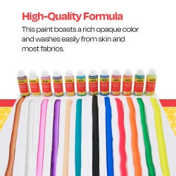 - Tempera paint easily washes off of skin and most fabrics