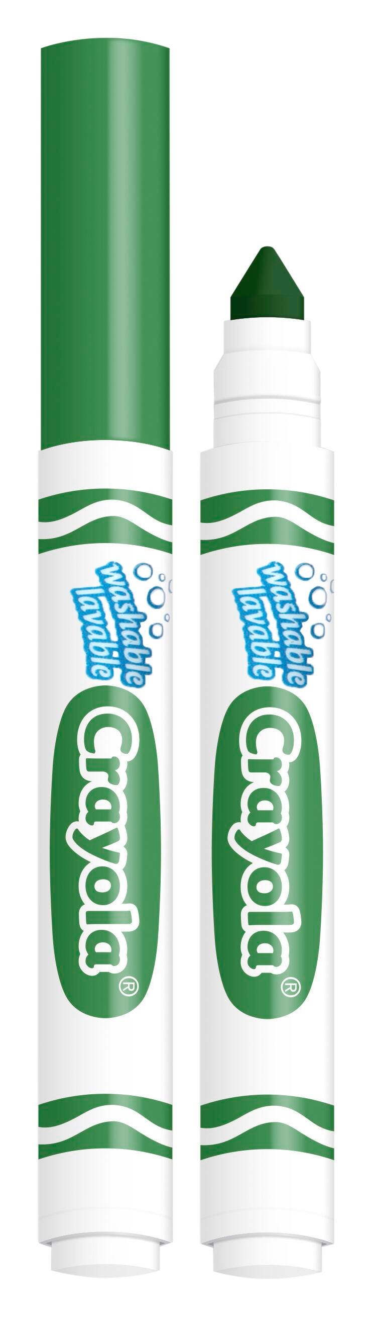 Bring home the most washable marker in the world! This pack of Bulk Ultra-Clean Washable Markers from Crayola is perfect when you need a refill of a specific color, or when your next project calls for a particular theme. These markers have a broad-line tip that lays down bold strokes or thin lines, great for coloring, drawing, and writing. The Ultra-Clean formula keeps the bold colors where you want them, making it easy to wash stray marks from skin, clothing, and even walls. This pack contains 12 green markers.Features