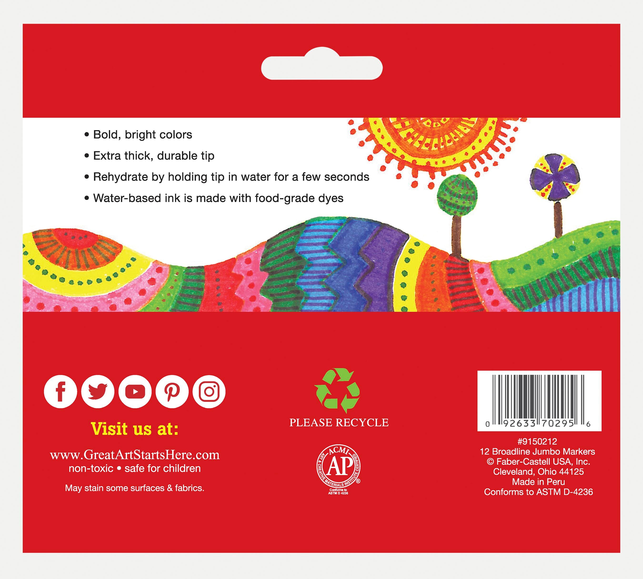 Faber-Castell Jumbo Washable Markers, Broadline, Assorted Colors, Set of 12