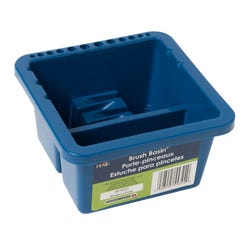 Plaid Enterprises Brush Basin measuring 6-1/2 x 3-1/2 inches holds up to 12 brushes of different sizes. Hi-density polypropylene basin is resistant to water, oil and lacquer-based solvents. Easy to clean basin features 2 separate wells, one with ridges on bottom to scrub bristles clean and the other with 5 molded brush holders to keep brushes suspended. Dark blue.Features