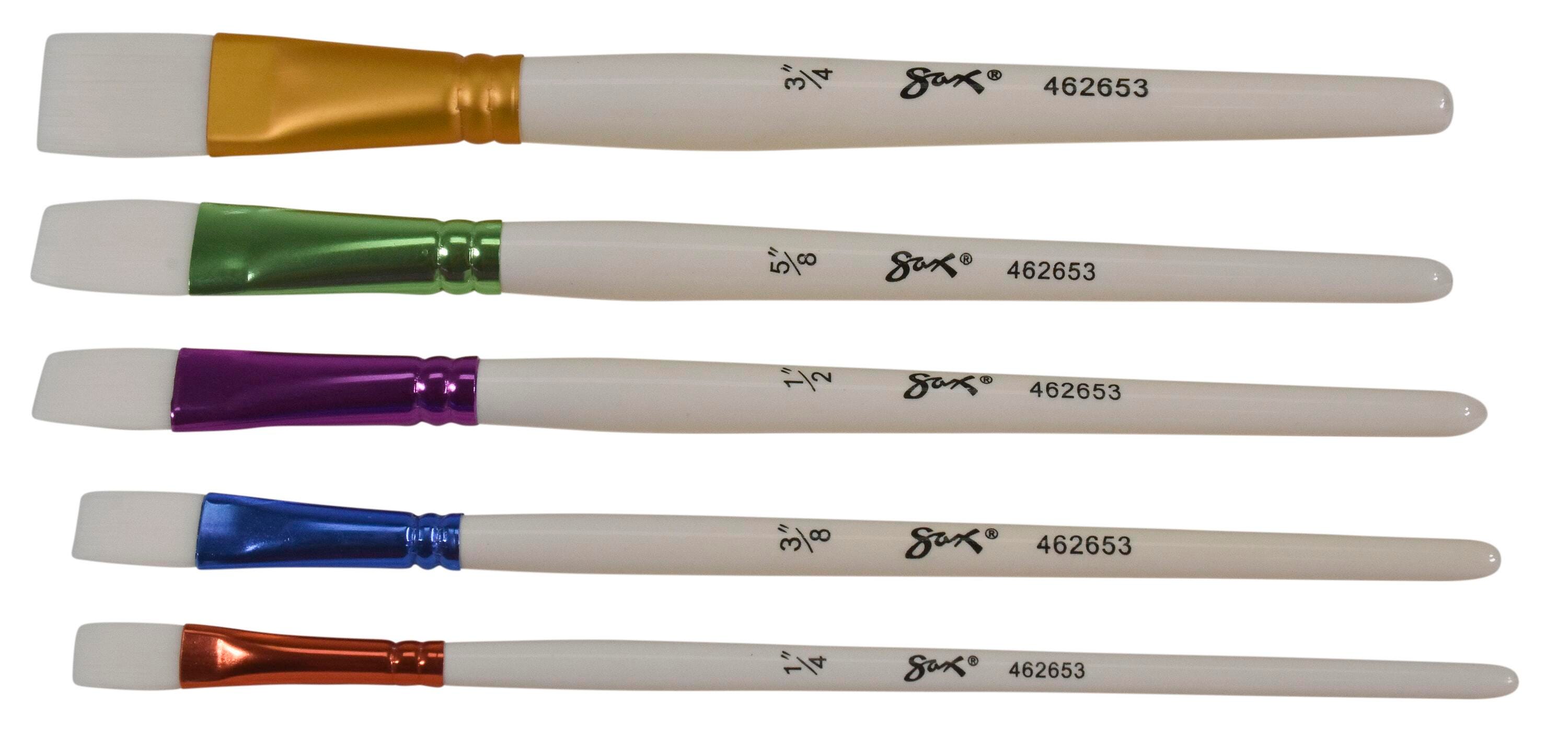 Sax Spectrum Flat Watercolor Paint Brushes with Short Handles, Assorted Sizes, Set of 5