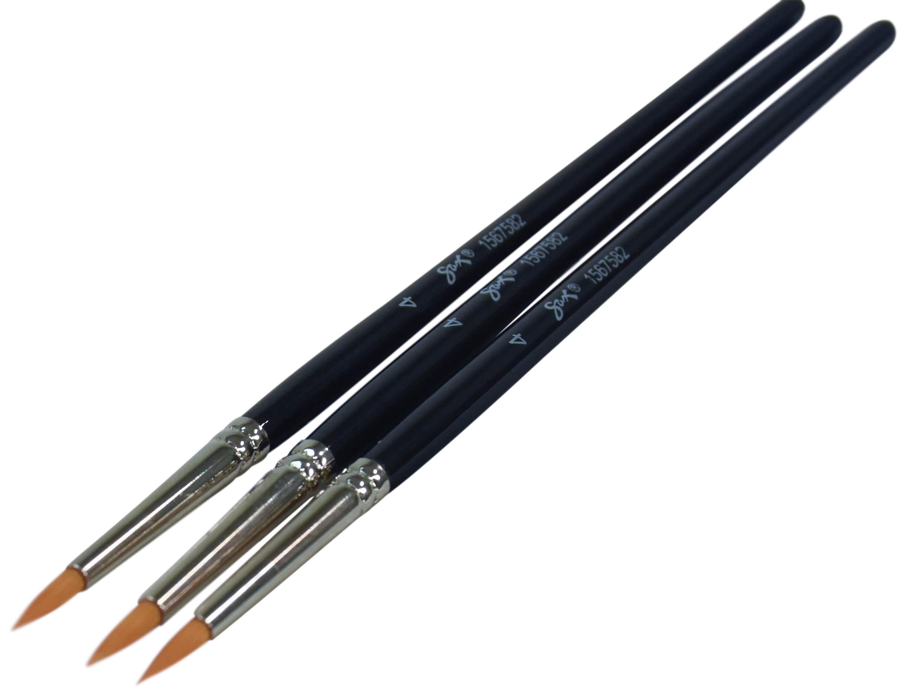 These Sax golden taklon watercolor paint brushes come in size 4. The synthetic brushes feature short handles for better comfort and control. Each lacquered hardwood handle has nickel-plated, seamless aluminum ferrules for long-lasting durability. Choose the responsive round brush design for all watercolor techniques and painting surfaces. Use the 3-pack in the classroom, art studio, or home.Features