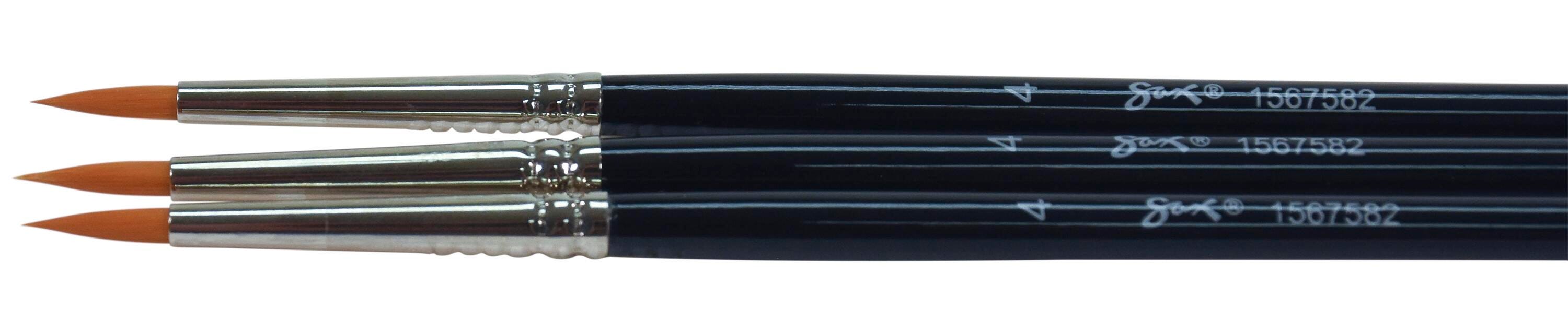 Sax Golden Taklon Watercolor Paint Brushes with Short Handles, Round Type, Size 4, Set of 3