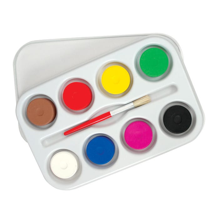 This Sax Empty Palette is ideal for class or home use. Will fit tempera cakes that measure 2-1/4 x 11/16 inches (not included). Palettes are made of durable styrene plastic that won't crack. Heavy-duty, clear plastic lid doubles as a color mixing palette.