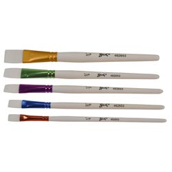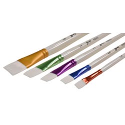 Sax spectrum flat watercolor paint brushes come in assorted sizes and colored ferrules for easy selection. Our brushes are handcrafted with high-quality, natural materials and designed to withstand different types of projects. Each hardwood lacquered handle is painted glossy white for a sleek look and includes colored anodized aluminum ferrules. Get predictable brush strokes every time with great color capacity, crisp edges, and sharp points on our high-quality brushes.Features