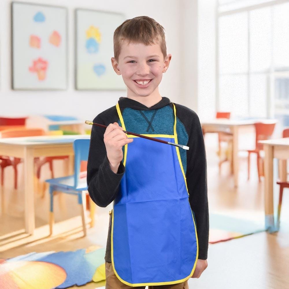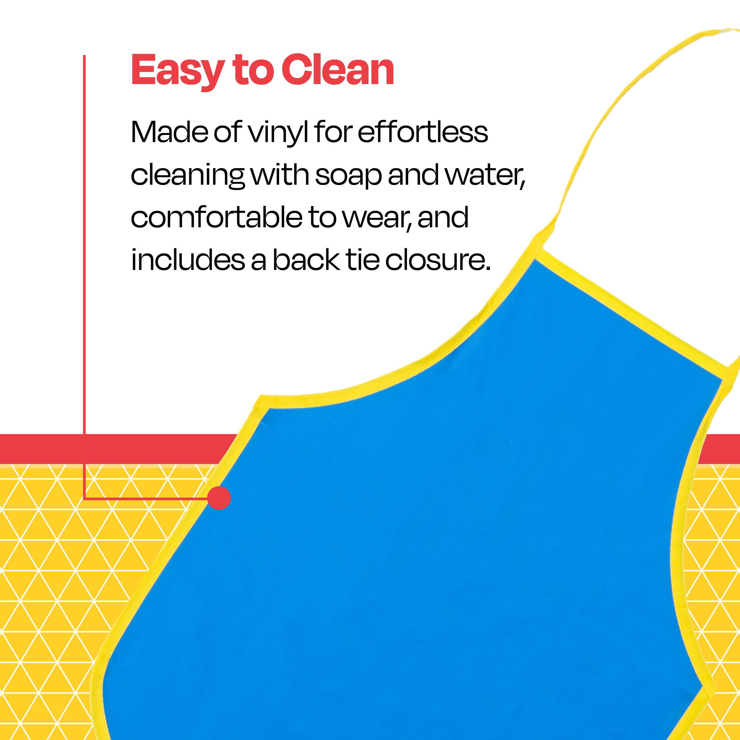The School Smart child’s painting apron is a vinyl art apron that’s easy to wear and clean. This apron comes in multiple colors and features a tie-back that makes it quick and easy to put on and take off. Designed for children in preschool, kindergarten, or early primary school, it helps keep stains and splatters away from clothes. The art apron is a must-have for toddlers and young kids learning to paint.