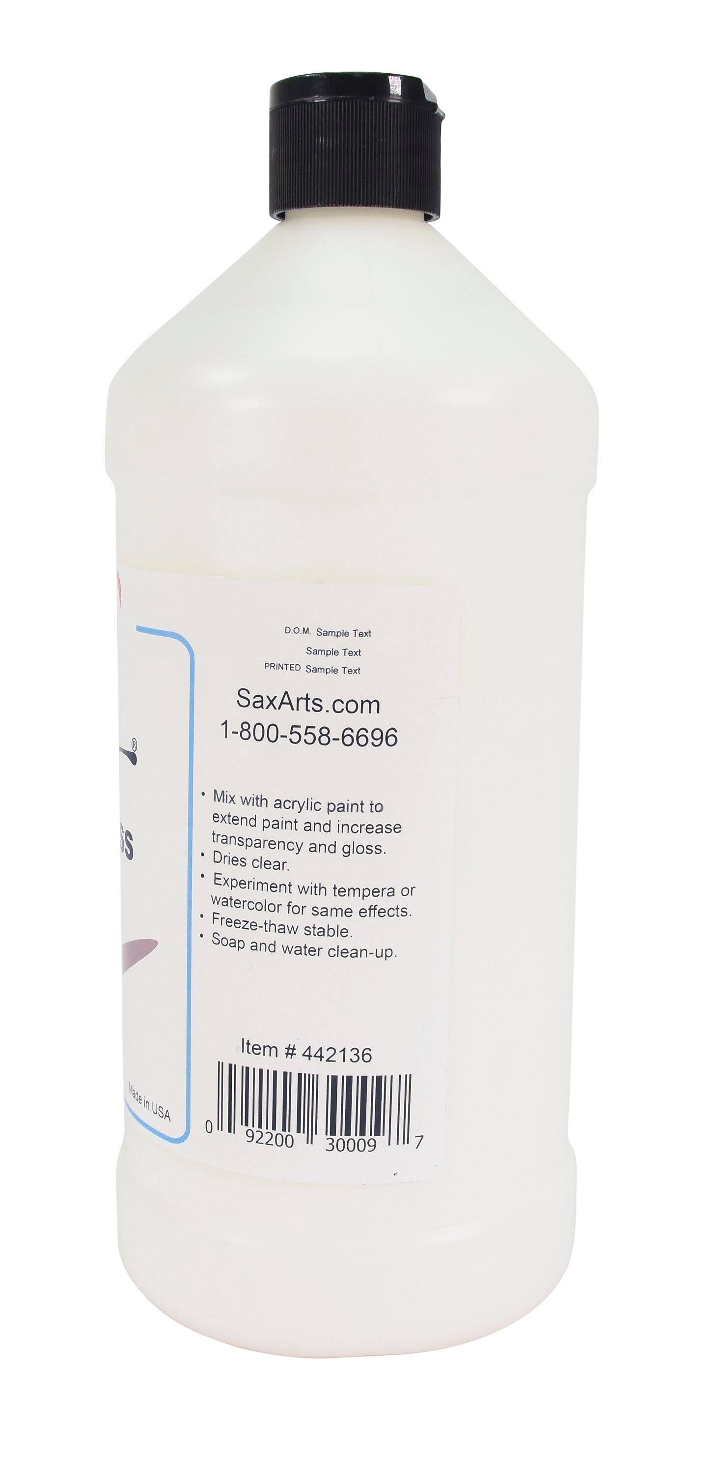 Sax acrylic gloss medium helps prepare and preserve art projects. Use the versatile formula to create your best paintings. Mix the high-gloss sealant with acrylics or other materials like tempera or watercolor to help ensure beautiful, lasting results. The solution also works to restore and protect artwork from chipping, fading, or discoloration. Our gloss medium dries clear.Features