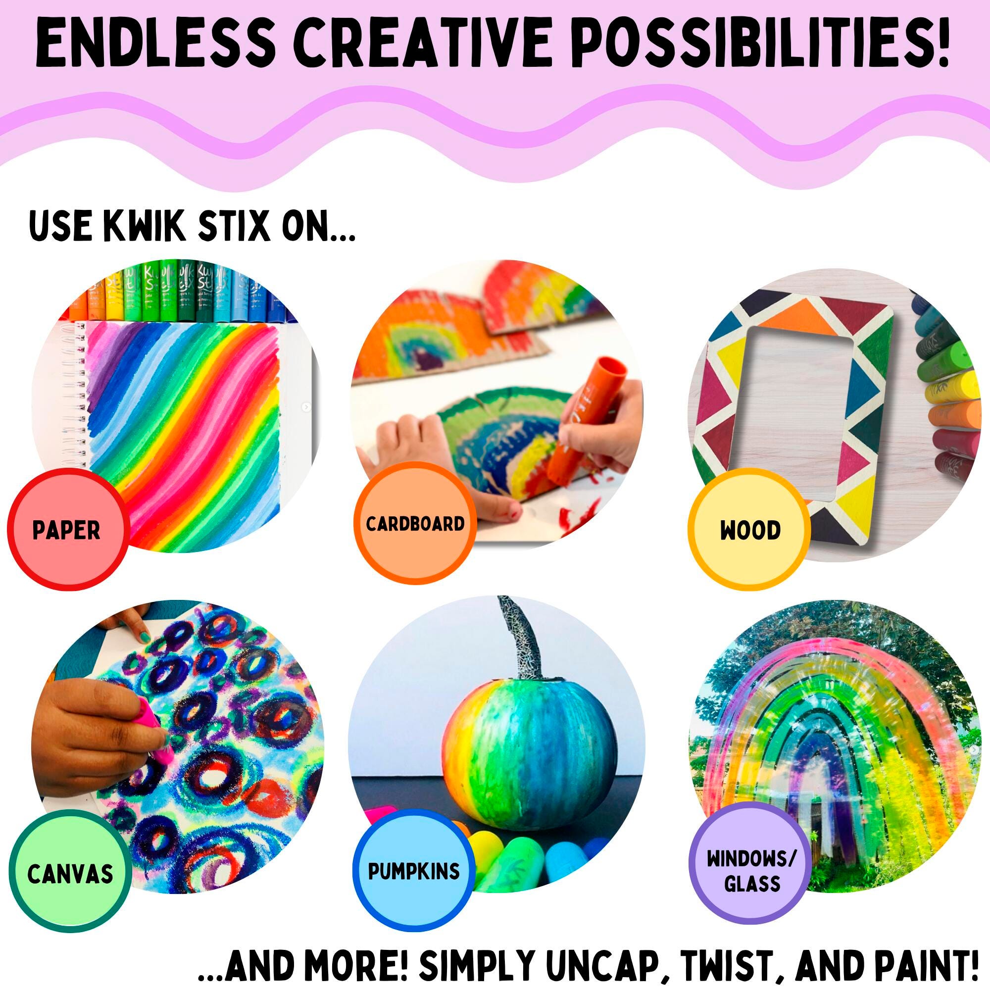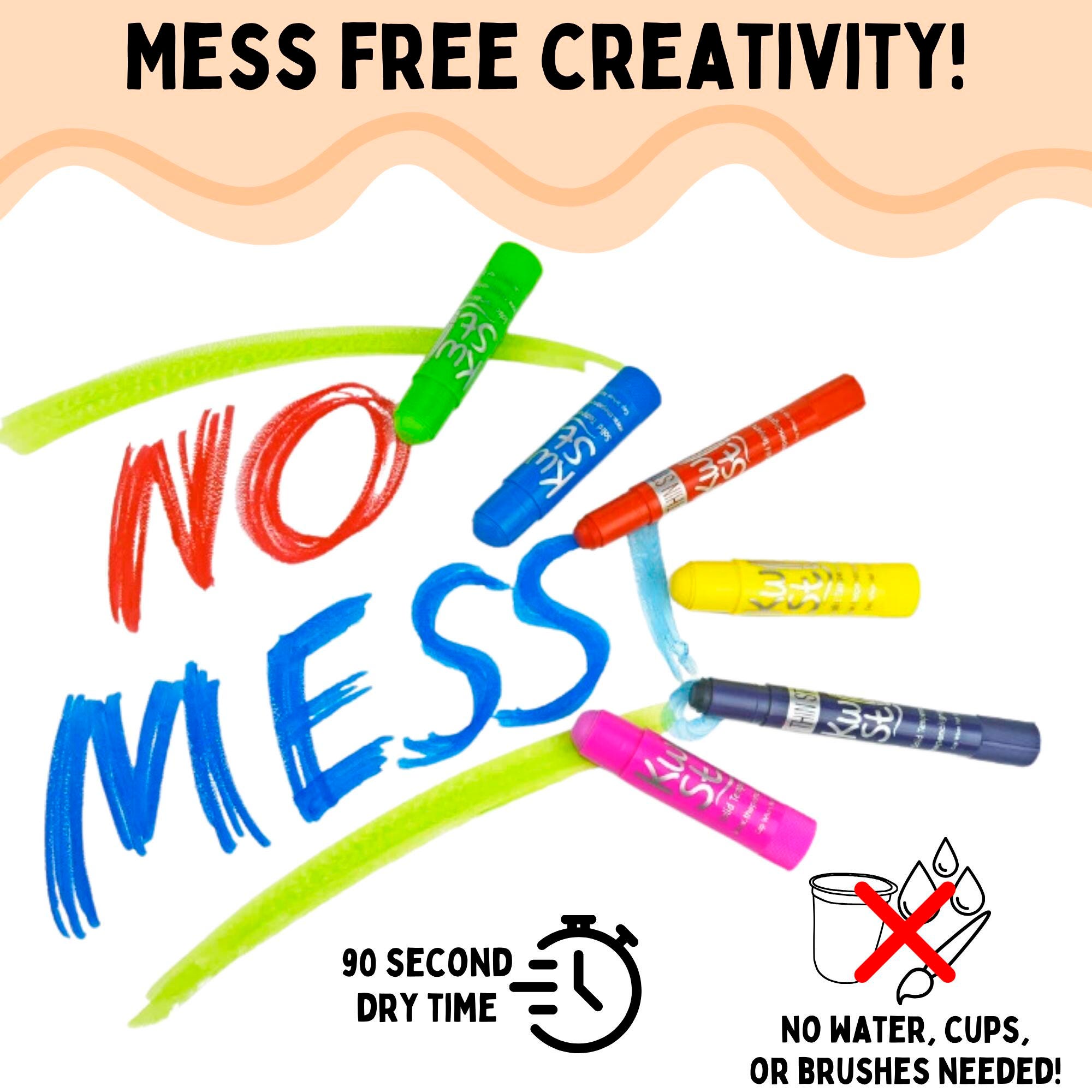 Easy-to-use paint sticks dry in under 90 seconds, keeping creativity clean and stress-free