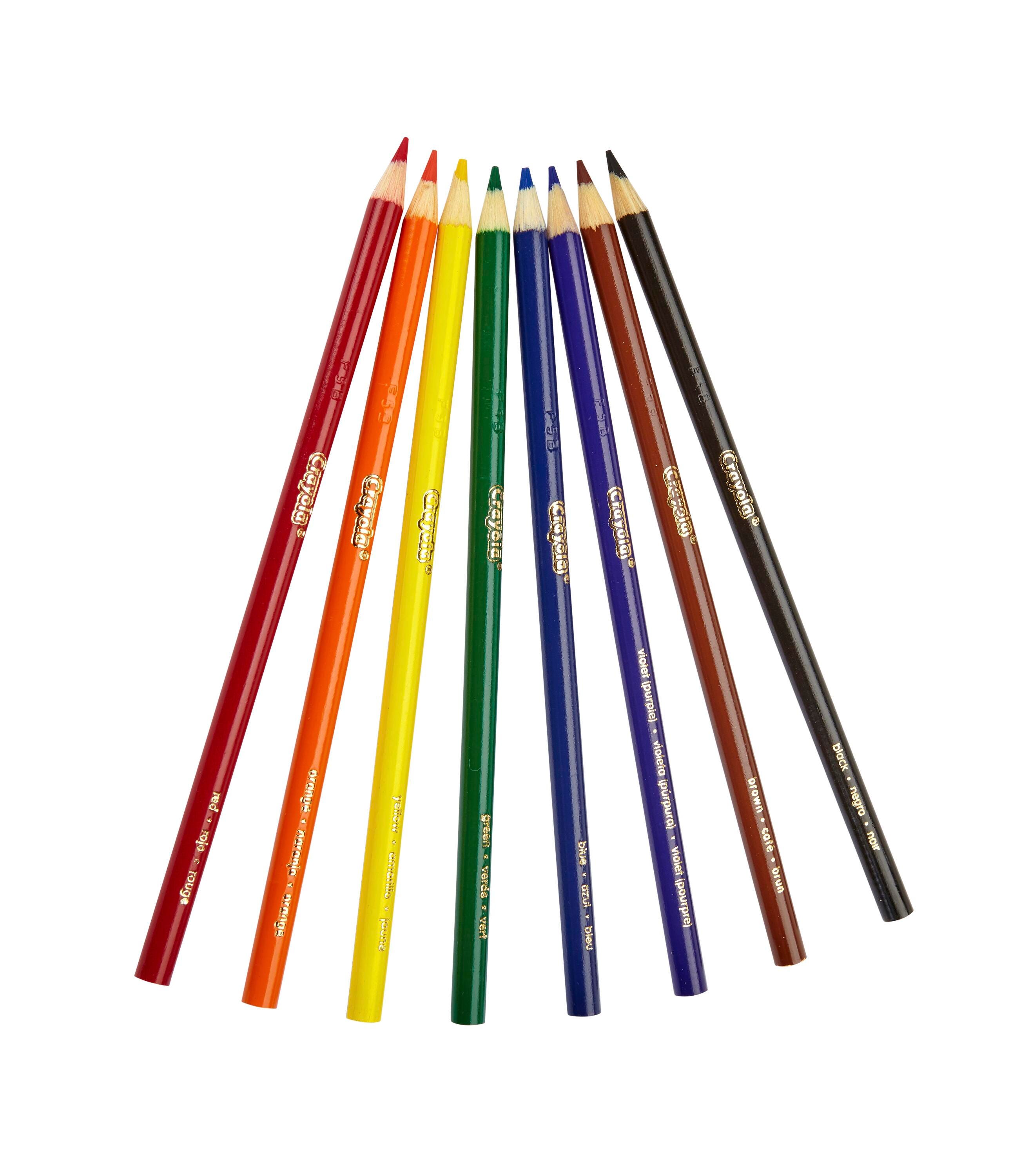Write, draw, color, and more with this pack of Crayola Colored Pencils. These art tools are ideal for practicing more detailed sketching or shading techniques and allow color mixing and blending to create new and unique shades. The thick 3-1/3 mm lead tips are soft for laying down smooth, non-scratch color but won't break easily under pressure. This pack contains 8 pre-sharpened colored pencils, 1 each of the following colors: red, orange, yellow, green, blue, purple, brown, and black.Features
