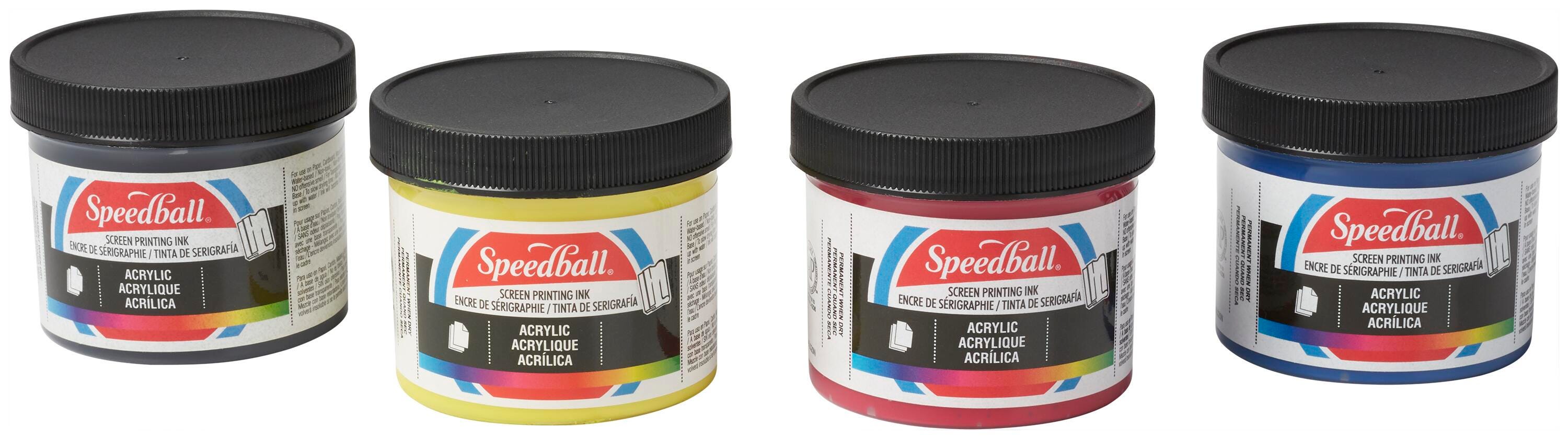 Speedball Permanent Acrylic Screen Printing Ink Set, 4 Ounces, Assorted Colors, Set of 4