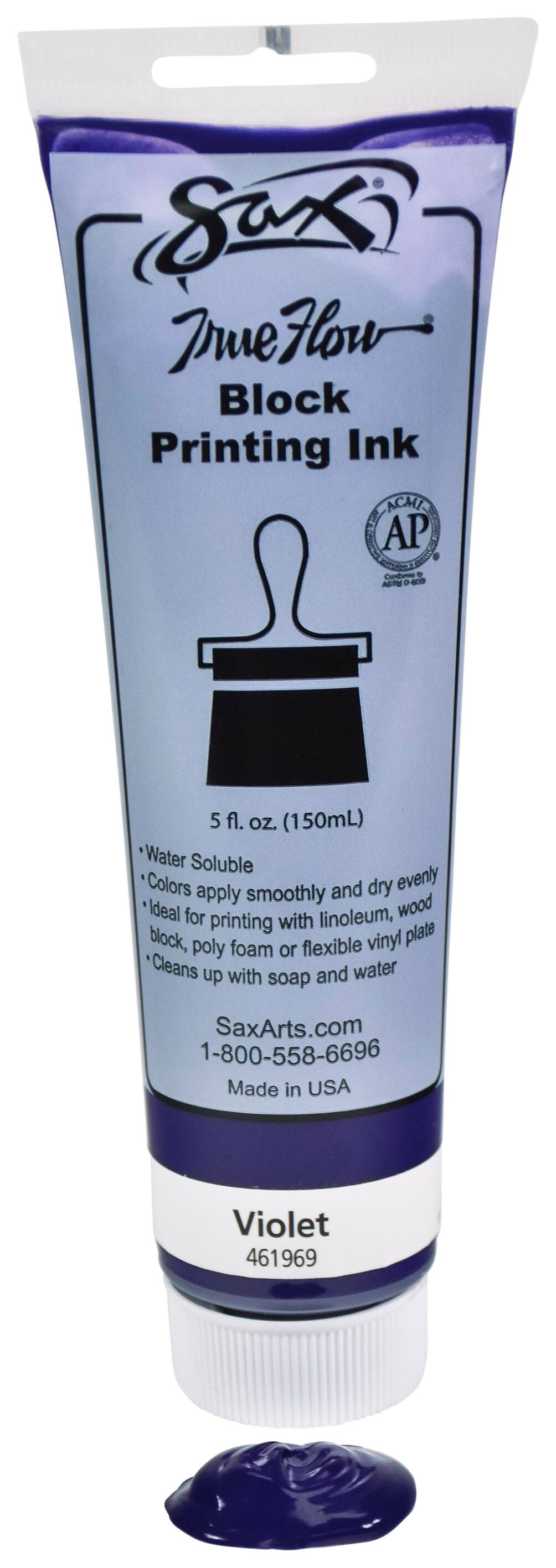 Sax violet block printing ink leaves a lasting impression. The color comes in a convenient 5 ounce tube that’s easy to handle, use, and store. Our water soluble block ink applies smoothly, dries evenly, and inks can be mixed. Use the formula for relief printing and stamps. It’s suitable for different materials, such as linoleum, wood block, flexible vinyl plate, and polyfoam. The ink also applies easily to paper by hand, and rinses off quickly from skin. It’s perfect for hand palm and finger print creations for kids.Features