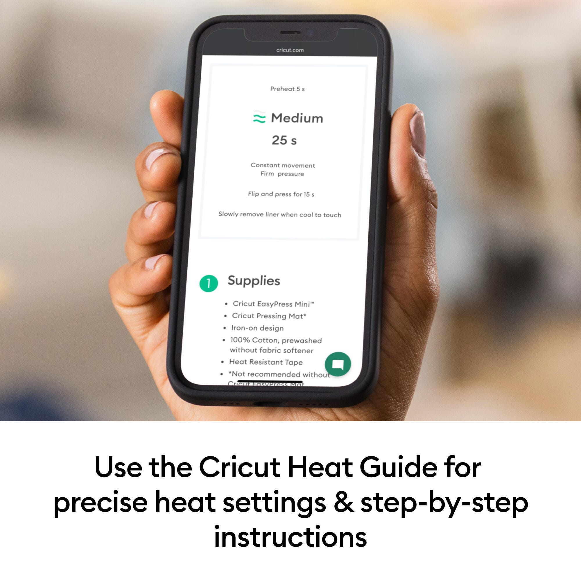 • Three heat settings are all you need for every heat transfer project and the user-friendly Cricut Heat Guide provides precise time & temperature settings, and step-by-step pressing instructions