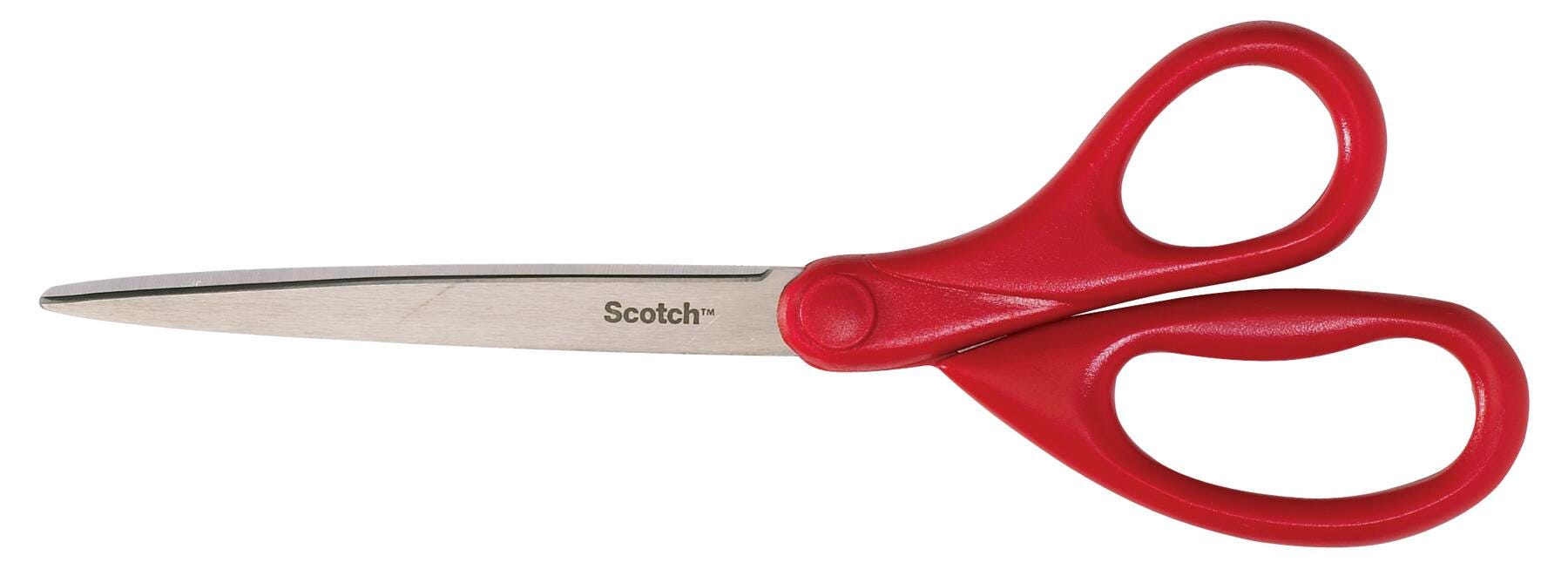 Scotch Home and Office Scissors are ideal for most general purpose use. Stainless steel blades resist corrosion and the durable plastic handle is designed to be both comfortable and functional for right and left handed users. 5-year limited warranty included. Length 8 inches. Straight handle. Red.Features