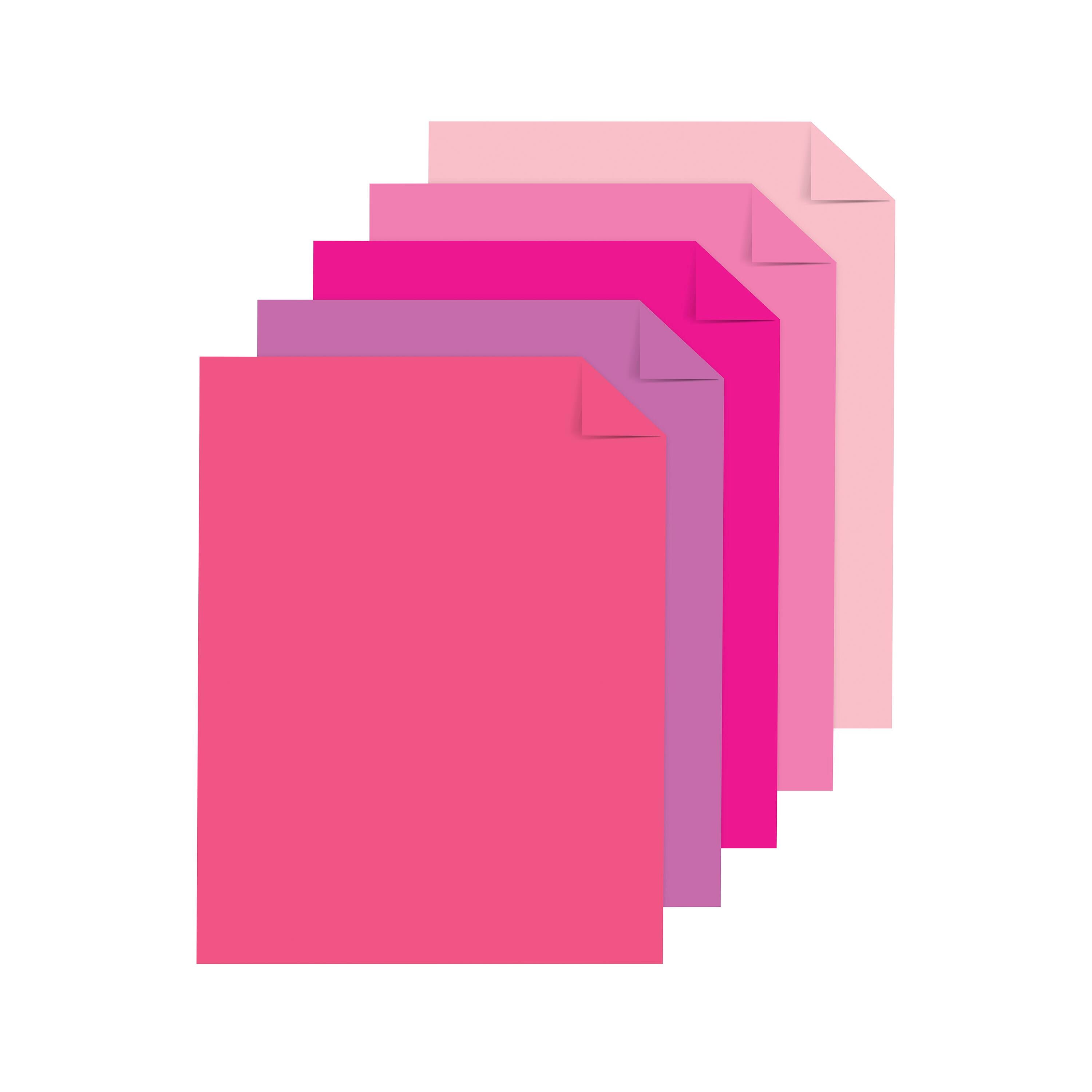 The Interstellar Pinks Assortment from Astrobrights is the perfect choice for out-of-this-world results for your printing and creative projects. This colored paper is 20% thicker than standard paper and delivers bleed-free results for single and double-sided documents. These sheets are fully dyed, ensuring there will be no white cores while cutting, folding, and tearing. Astrobrights colored paper saves you time and money on full-color printing and delivers brighter colors for brighter ideas. This pack includes 100 total sheets of paper, including 20 sheets each of Plasma Pink, Outrageous Orchid, Fireball Fuchsia, Pulsar Pink, and Bubble Gum.Features