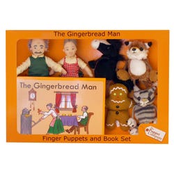 The Puppet Company The Gingerbread Man Traditional Story Set includes six finger puppet characters, as well as a beautifully illustrated hardcover book. Make storytime interactive with this traditional story set!