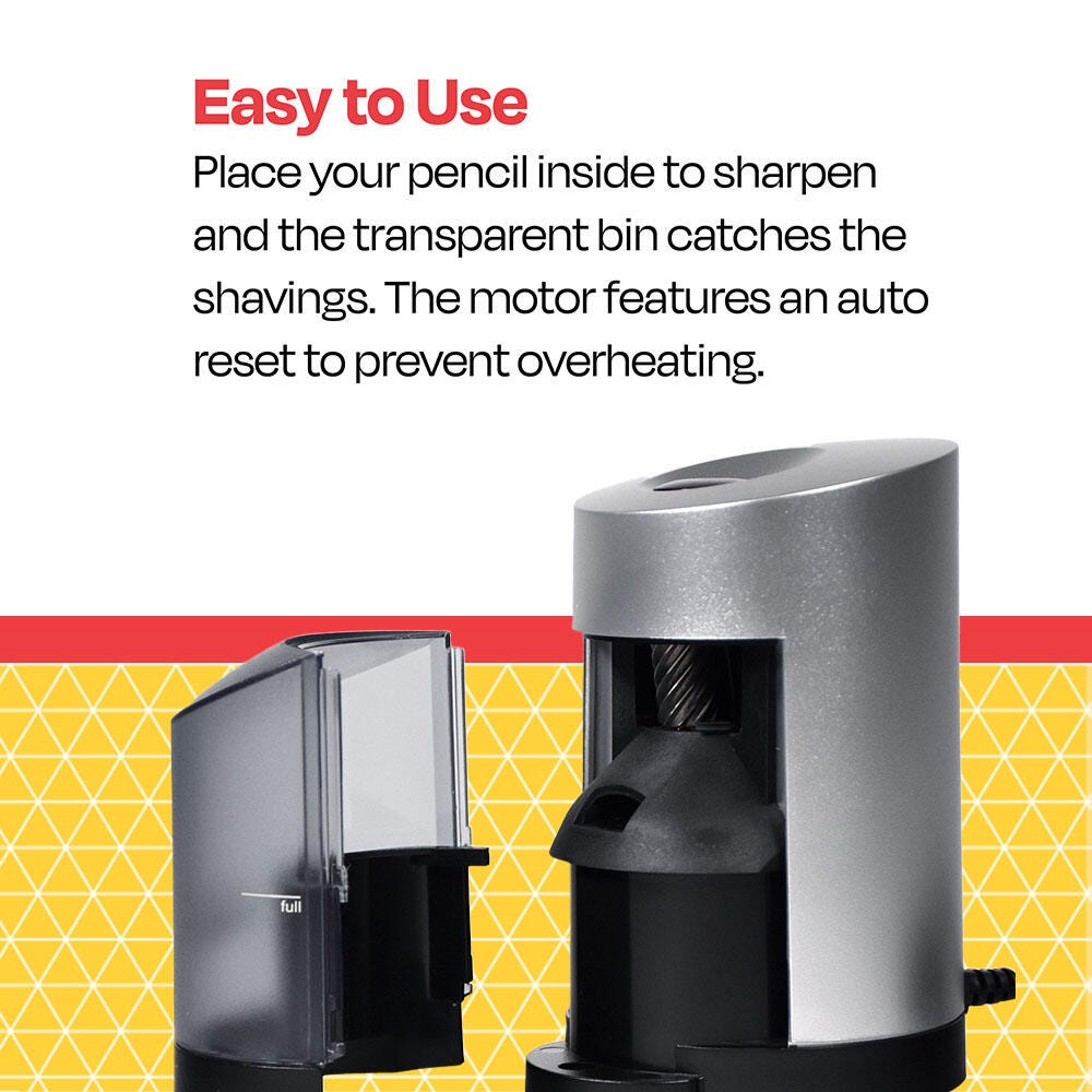 The electric pencil sharpener allows for easy use with a fast-speed setting for a busy classroom or office