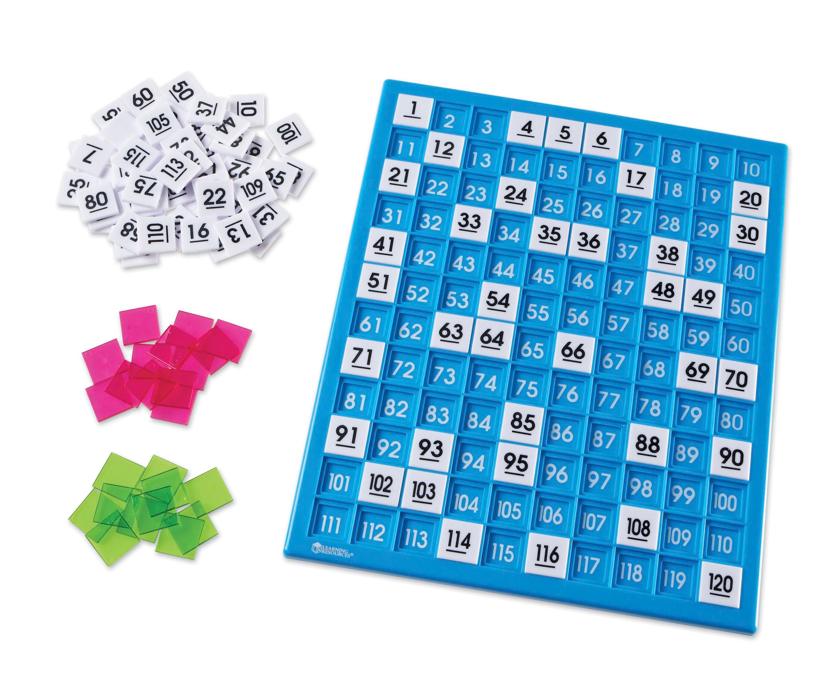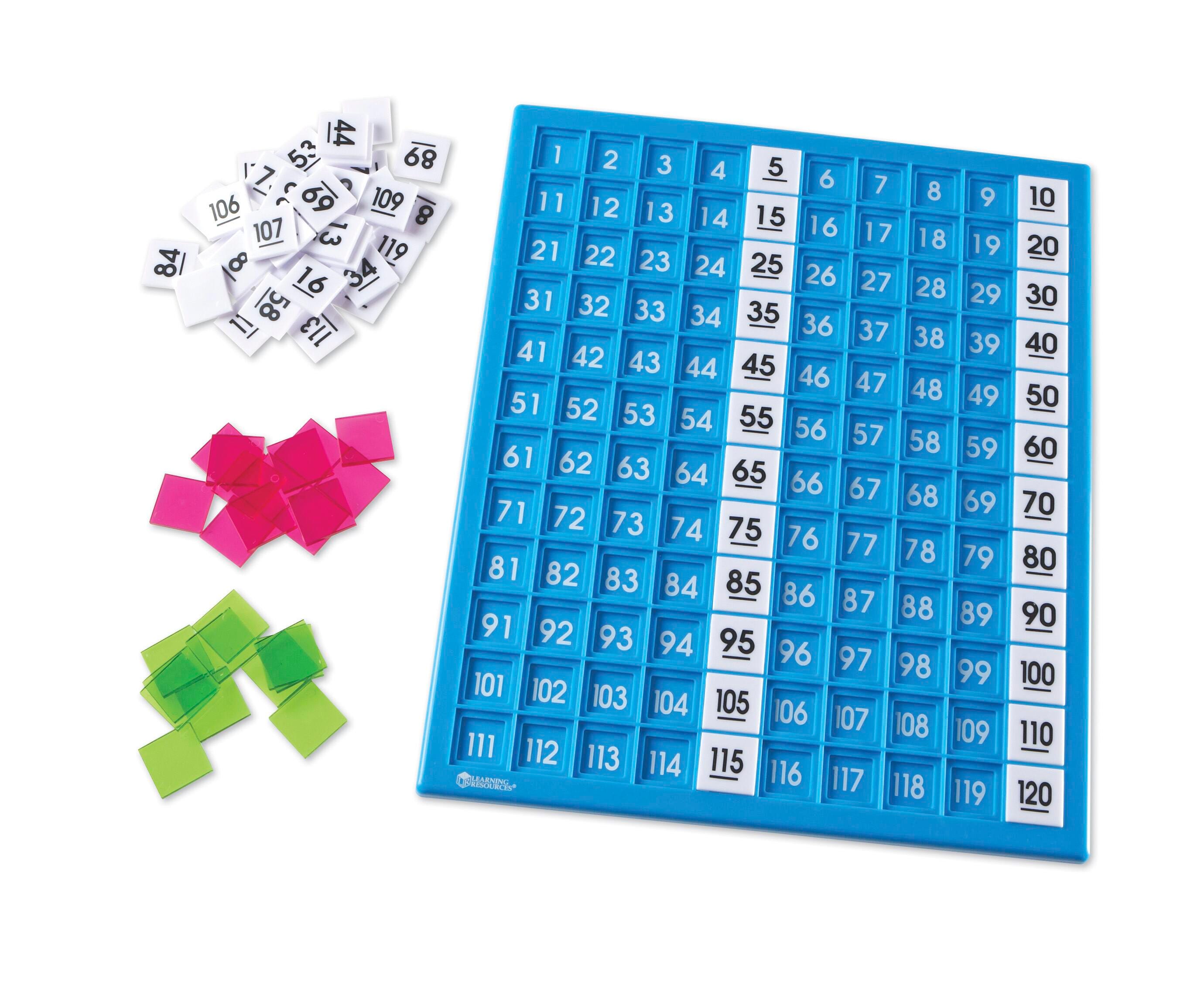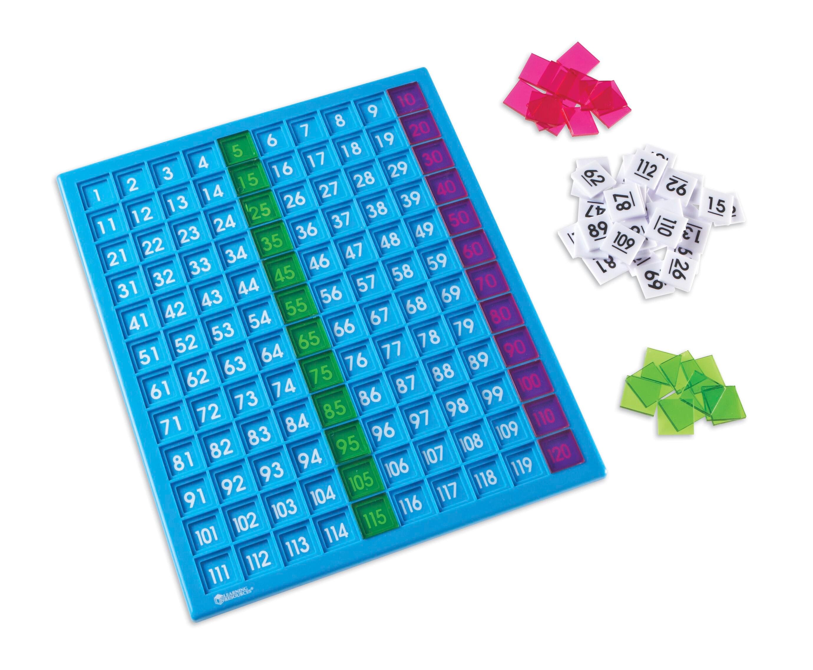 Build, count, and discover the world of 120 with this Learning Resources Number Board! Introduce number patterns, sequencing, place value, odd and even numbers, and much more. Double-sided board features numbers printed on the front and a blank grid for additional patterning and graphing activities on the reverse. Includes durable plastic tray and 180 plastic tiles, including transparent blanks in two colors for highlighting. Meets Common Core State Standards. Board measures 12 W x 14 H inches. Grades 1 and up. Ages 6 and up.