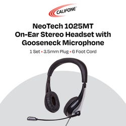 Califone NeoTech 1025MT On-Ear Stereo Headset with Gooseneck Microphone, 3.5mm Plug, Black/Silver
