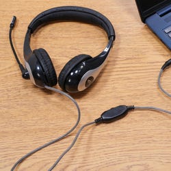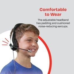 Amp up classroom learning and fun with the comfy Califone stereo headphones with a flexible microphone and 3.5mm plug.