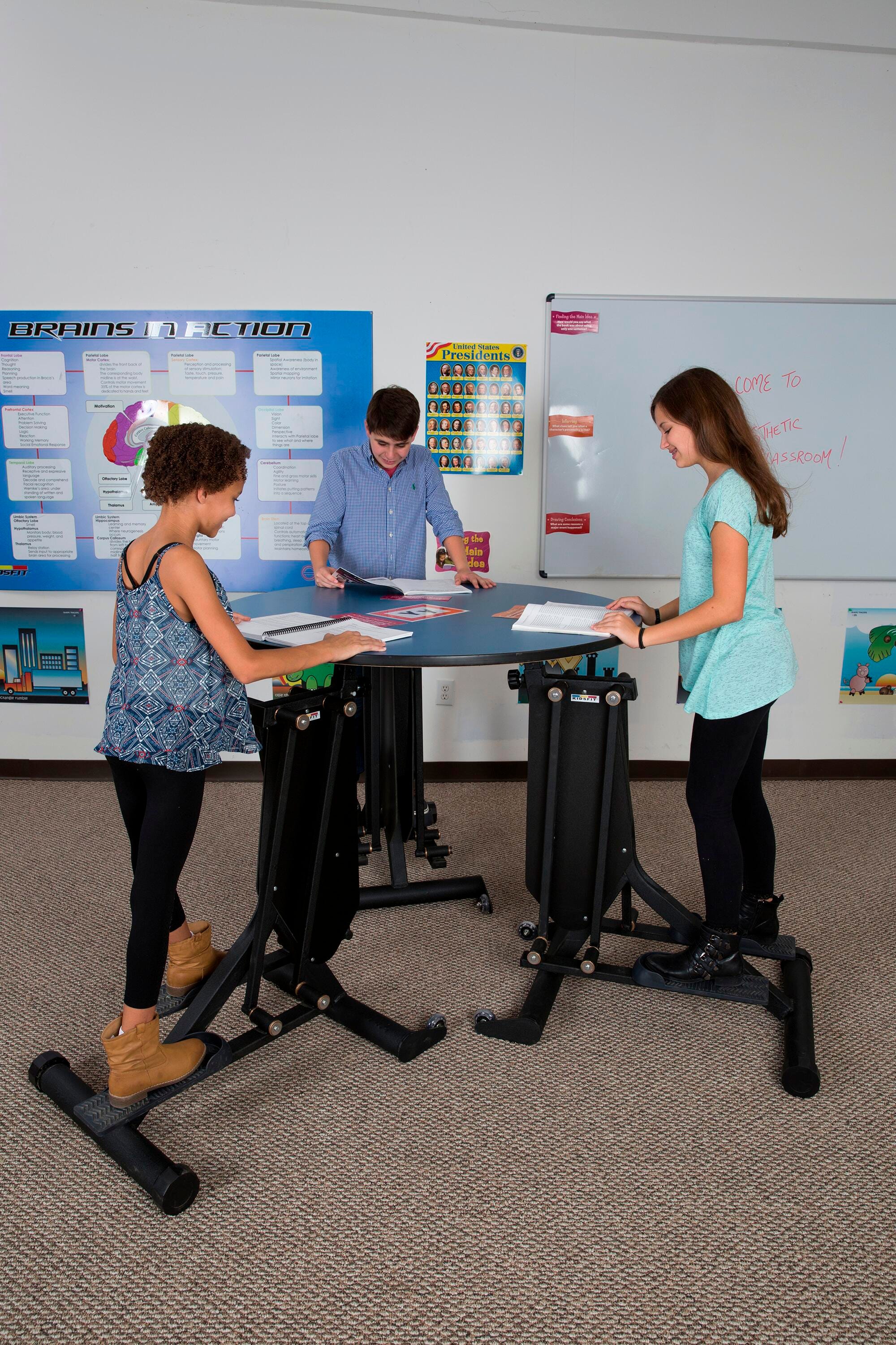 Three person strider desk is great for those who require continual movement. It allows students to utilize core and lower back muscles for stability. The "stride" motion has quickly become the most popular movement among the middle school to adult age group! It decreases cortisol "the stress hormone". Type of Motion: smooth, forward and backward gliding motions. Resistance free strides.