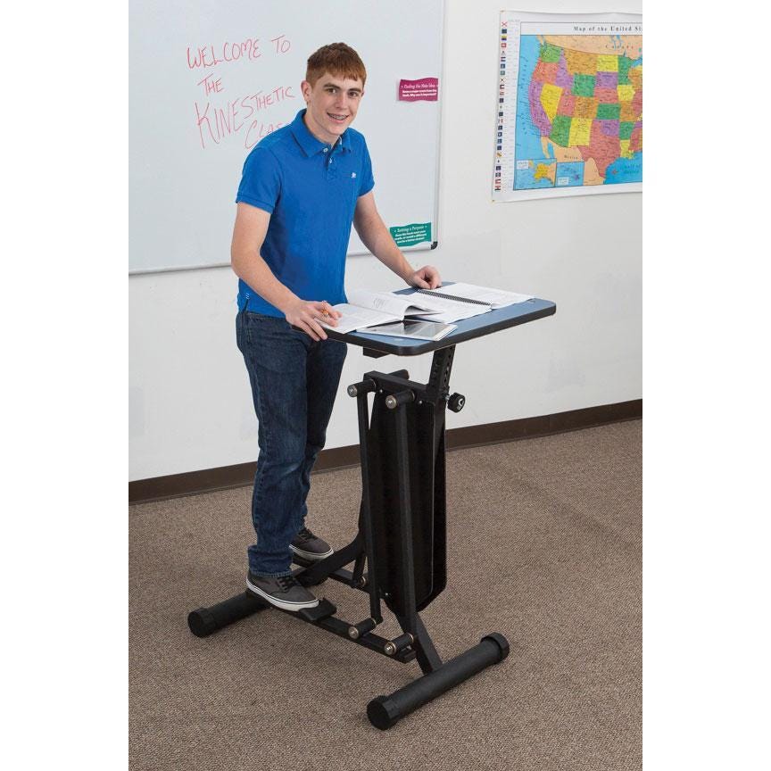 The Strider Desk provides an optimal learning experience by incorporating noise- free movements to engage students within the classroom. Its gliding motion allows students to smoothly accelerate forward using the lower body while simultaneously completing tasks on the ample work space desk. Desk measures 36 L x 28 W x 44 to 48 H inches and weighs 70 pounds. Desk is ideal for ages 7 to adult. and has a weight limit of 250 pounds.Features