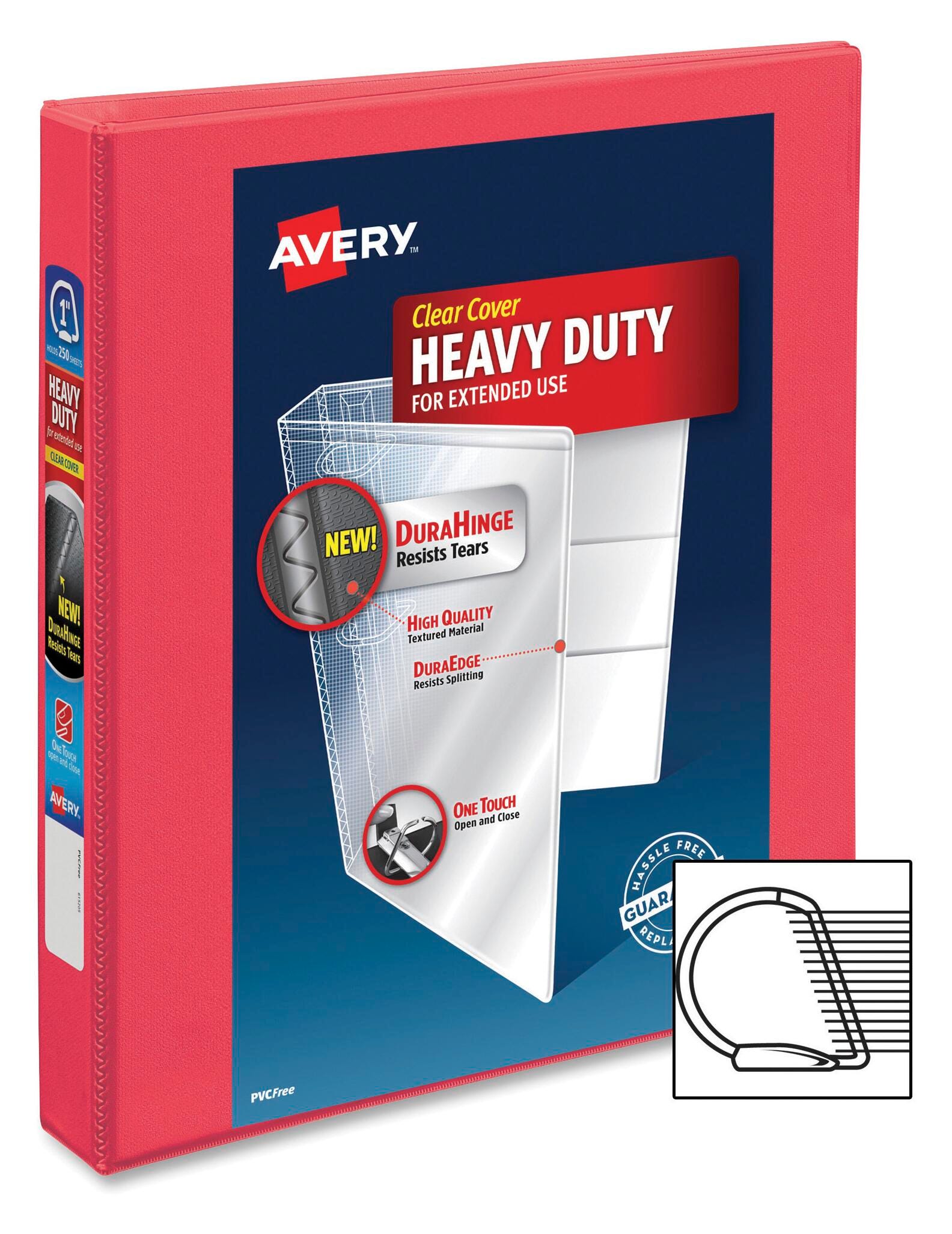 Avery Durable View Slant Ring Binders feature durable construction that is ideal for frequent referencing. DuraHinge design is stronger, lasts longer and resists tearing. DuraEdge feature makes the sides and top more pliable to resist splitting. Deep texture film offers a smoother finish and features a linen pattern for high quality look and feel. Wider front and back binder panels fully cover standard dividers and sheet protectors. Organize and secure paper with two interior pockets. Slant rings have a higher page capacity compared to same size round rings. Clear cover and spine for easy customization. Pages lie flat with back-mounted rings; exposed rivets on back. Holds 8-1/2 x 11 inch documents. Front insert and spine label included. 36% minimum post-consumer content.