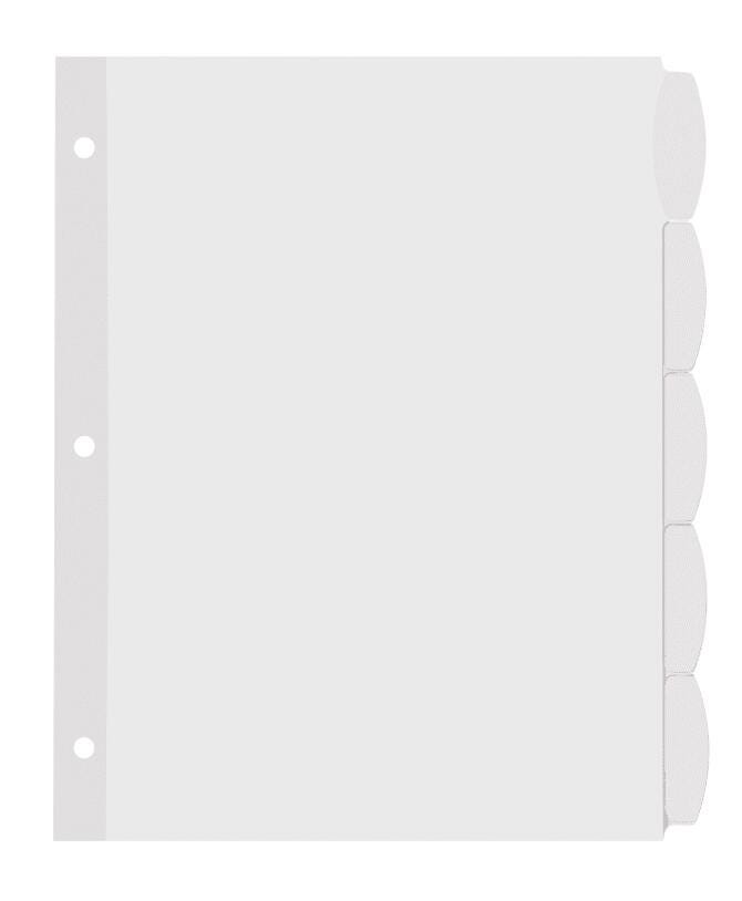 Easy Peel White Label Tab Dividers make it easy to design and print divider tab labels for a customized look on these arched tabs. Label the front and back of the tabs for quick referencing. Personalize your tab labels using free online templates on Avery Design and Print. Then print your labels in black and white or create your own custom color set, using any laser or inkjet printer. With the print-to-the-edge Easy Peel labels, featuring the Pop-up Edge, you simply bend back the label sheet, peel your label and apply to the divider tabs. Organization is as easy as personalize, print, pop-up and stick. Labels are repositionable while applying to tabs and then stick securely. Three-hole punched edge means the dividers are ready to use. Reinforced holes and tabs provide extra durability.