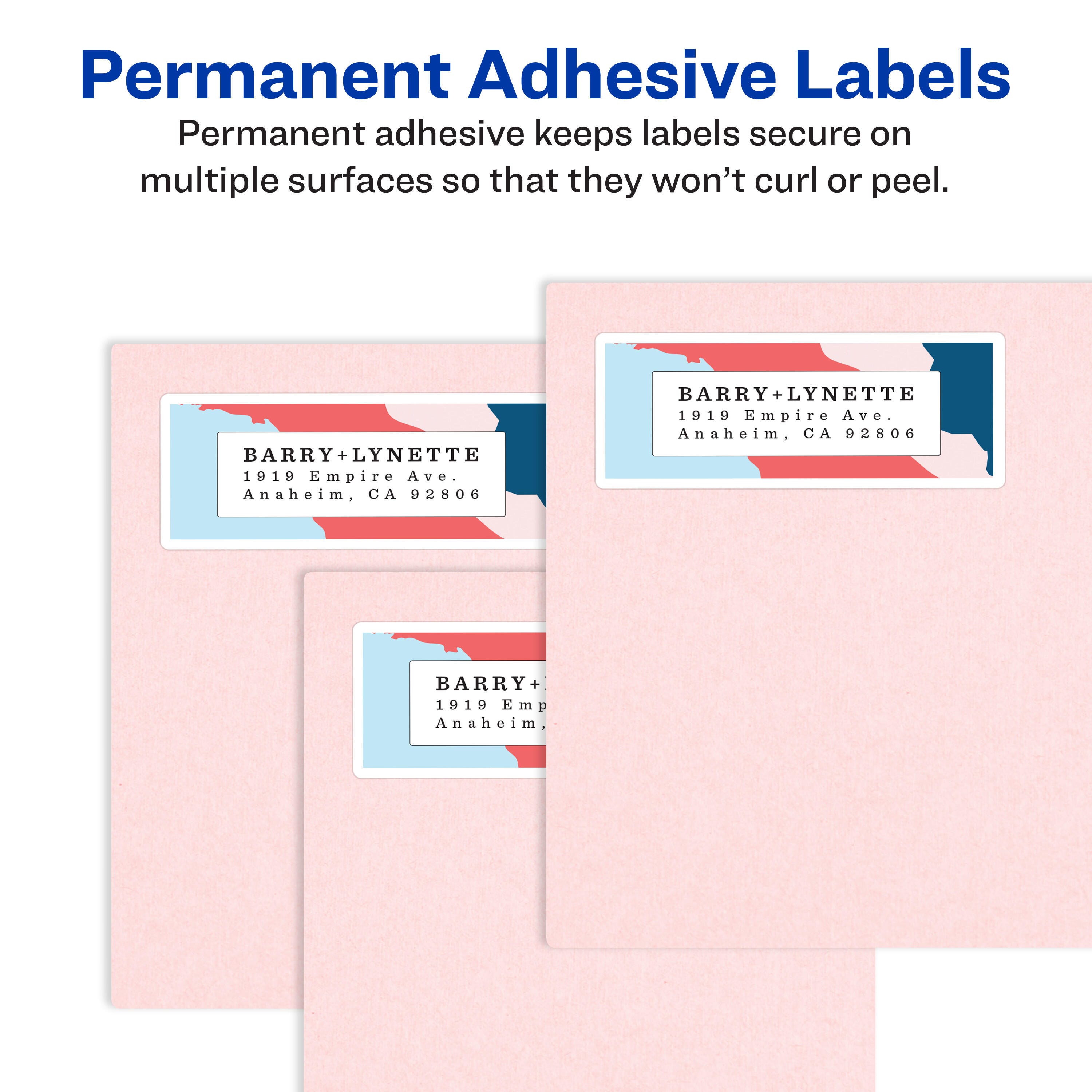 Easy Peel Address Labels are great when you want to create professional labels quickly and easily. They're perfect for high-volume mailing projects, labeling bottles, Ball and Mason jars, food containers, bath and beauty products, product branding, event decorations, party favors and crafts. Sure Feed technology is designed for a reliable feed through your printer, helping prevent misalignments and jams. The patented Easy Peel feature makes applying these labels a breeze. Simply bend the label sheet to expose the Pop-up Edge, peel off your label and fold the sheet back to flat. To easily customize your labels, use Avery's free online templates and designs.