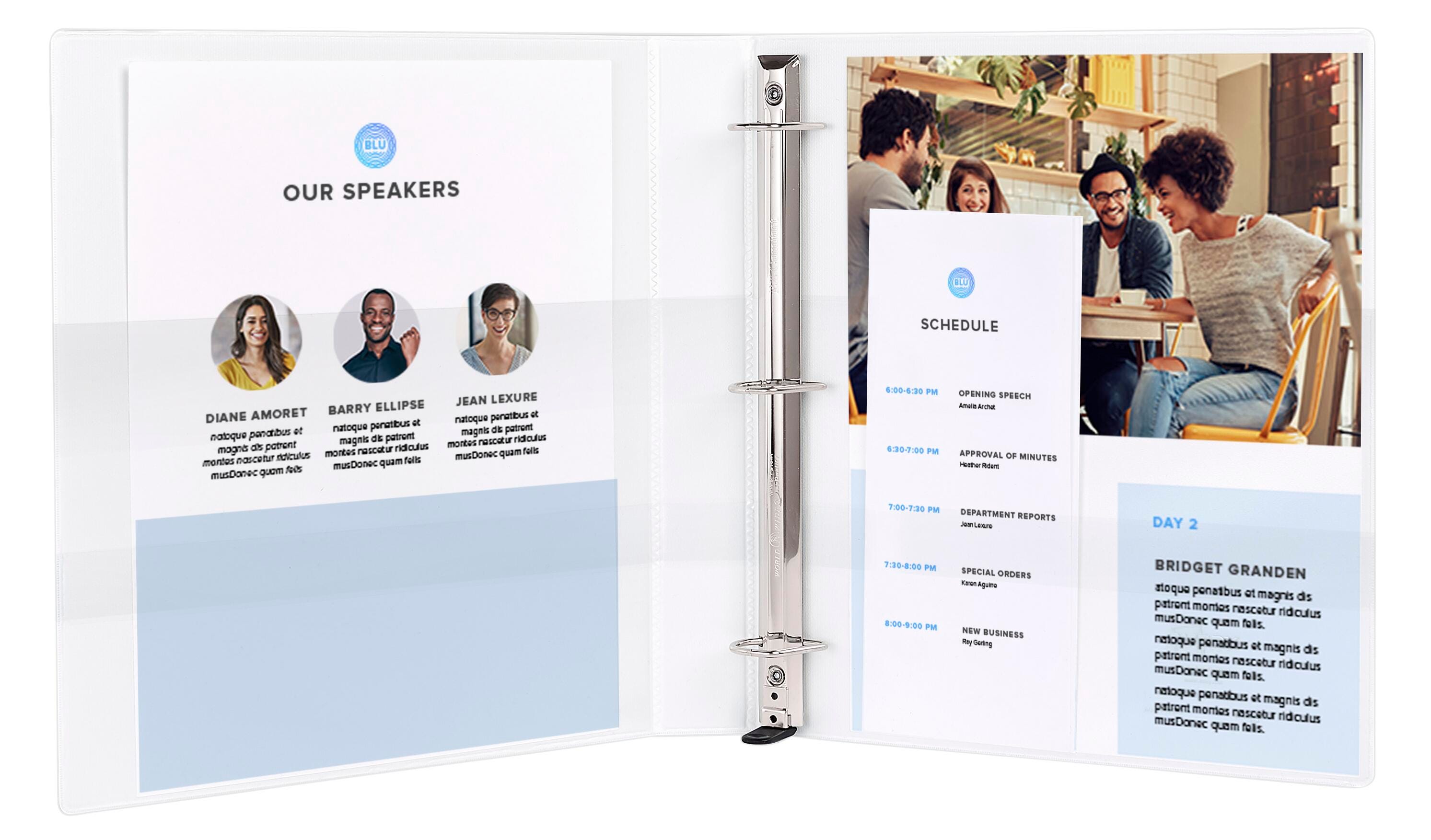 - Wider front and back binder panel also ensure that standard dividers and sheet protectors are fully covered—a must for students