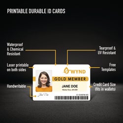 Avery Industrial ID cards come in printable sheets that conveniently break apart into credit-card-sized cards with rounded corners, making them easy to carry in a wallet or ID badge holders. These printable ID cards are made from sturdy 11 mil polyester that is waterproof and resistant to tearing, abrasion, chemicals, and UV rays, perfect for use in heavy-duty workspaces or anywhere a durable ID card is needed. The blank white ID cards are printable on both sides, using a standard desktop laser printer. This package includes 10 printable sheets that break into 8 cards each for a total of 80 cards that are 2-1/8 x 3-3/8 inches each.Features
