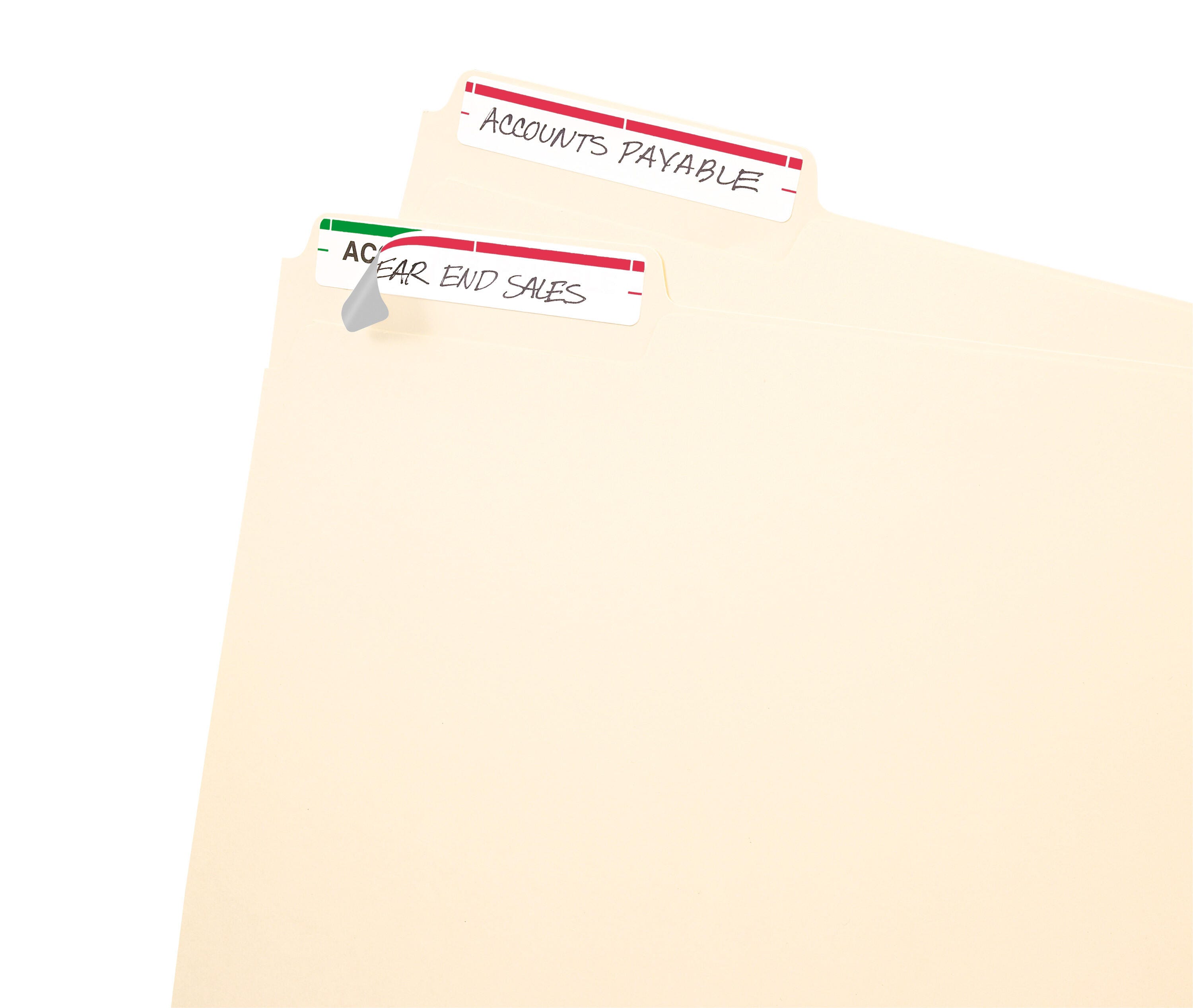 Create professional-looking file folder labels for easy and quick file identification. Labels with TrueBlock completely cover everything underneath so you can reuse mailing tubes, boxes and more. Labels have permanent adhesive that sticks without lift or curl. Each sheet of labels is acid-free, jam-free and smudge-free. Each sheet has labels sized to fit 1/3-cut tabs. File folder labels are compatible with inkjet and laser printers.