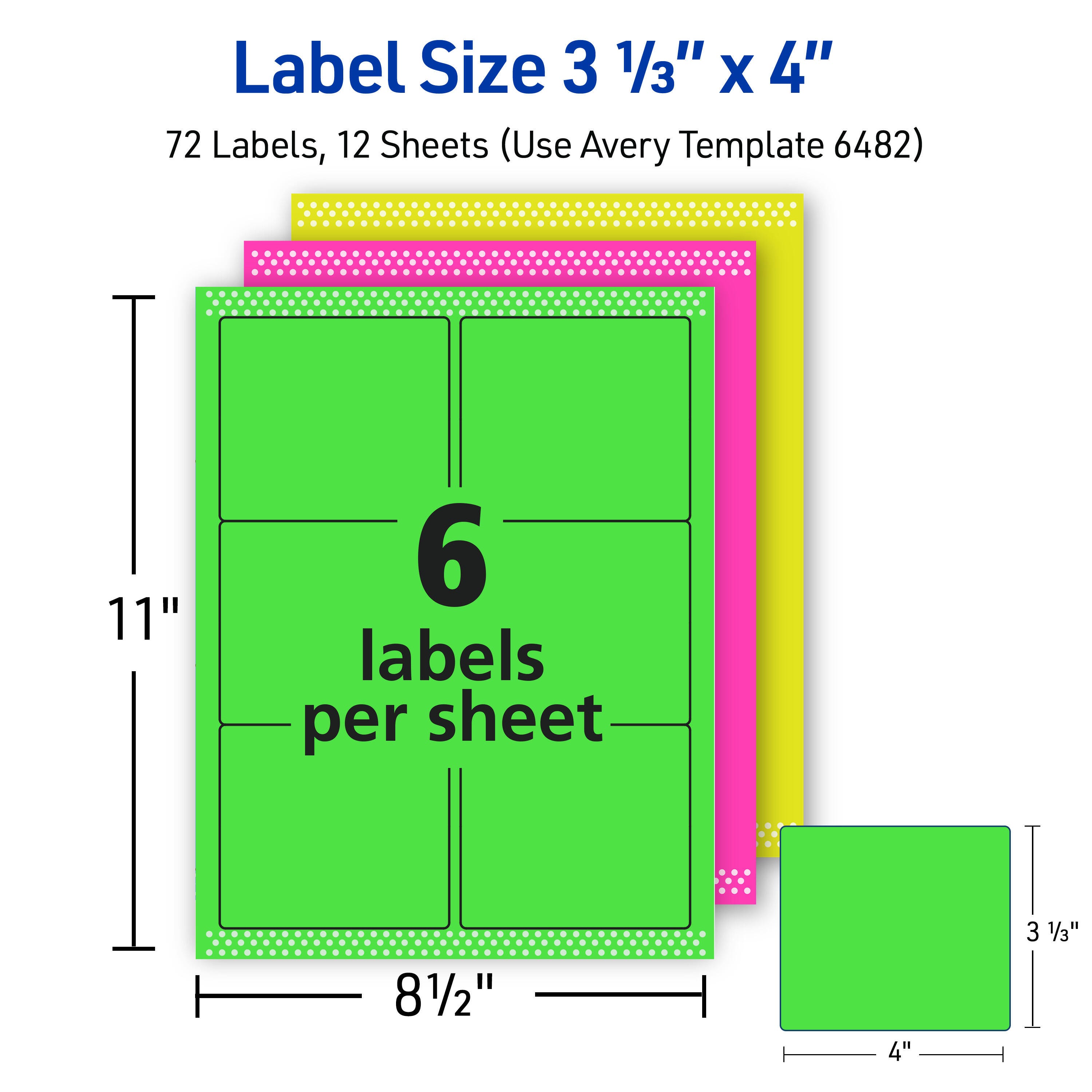 Avery Removable Labels, 3-1/3 x 4 Inches, Assorted Neon, Pack of 72