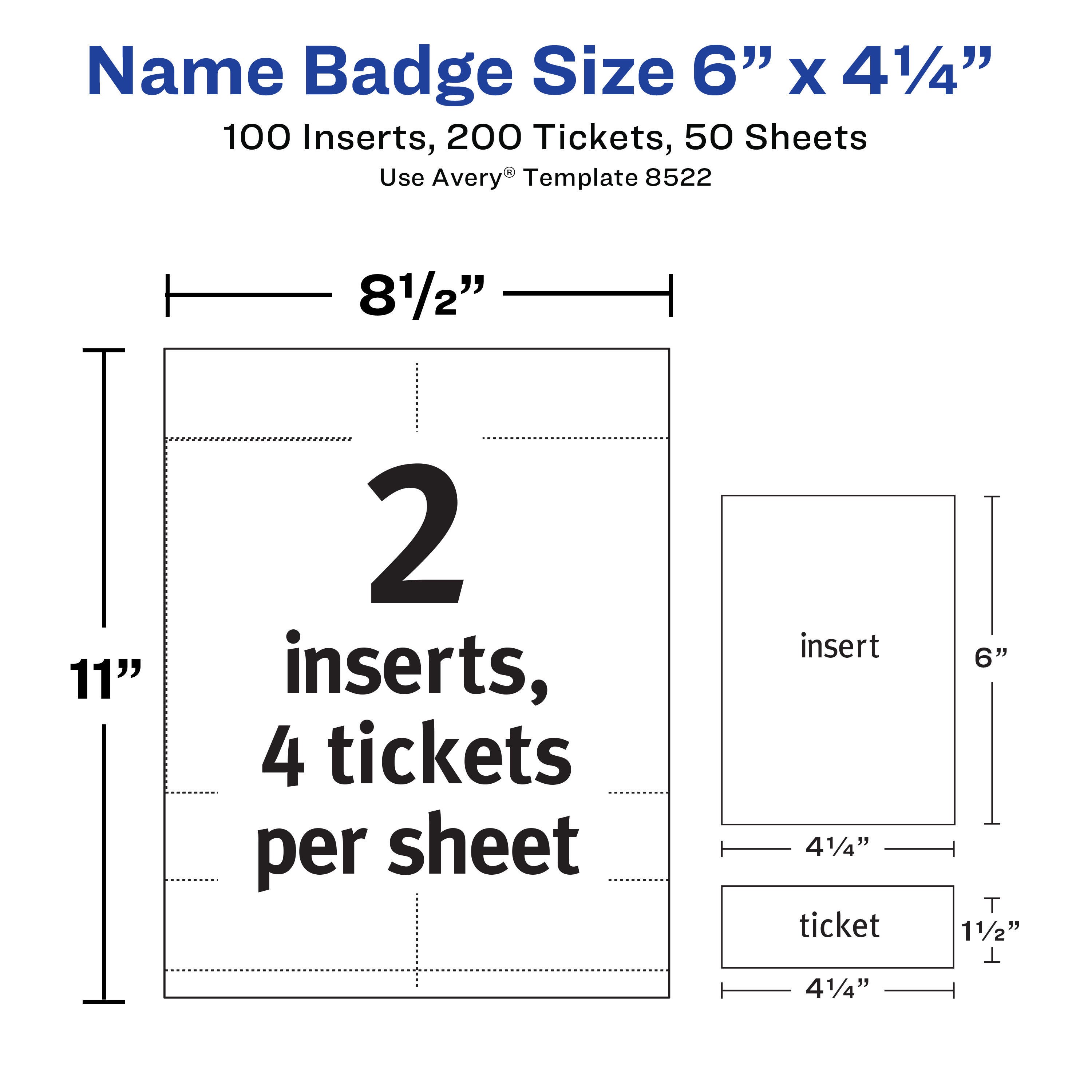 Avery Vertical Name Badge & Ticket Inserts -- Insert Refills, f/Vertical Name Badges, 4-1/2"x6", 100/BX