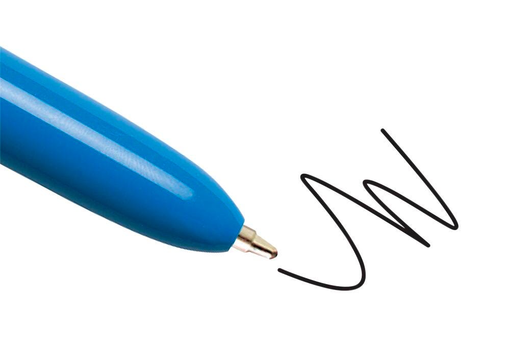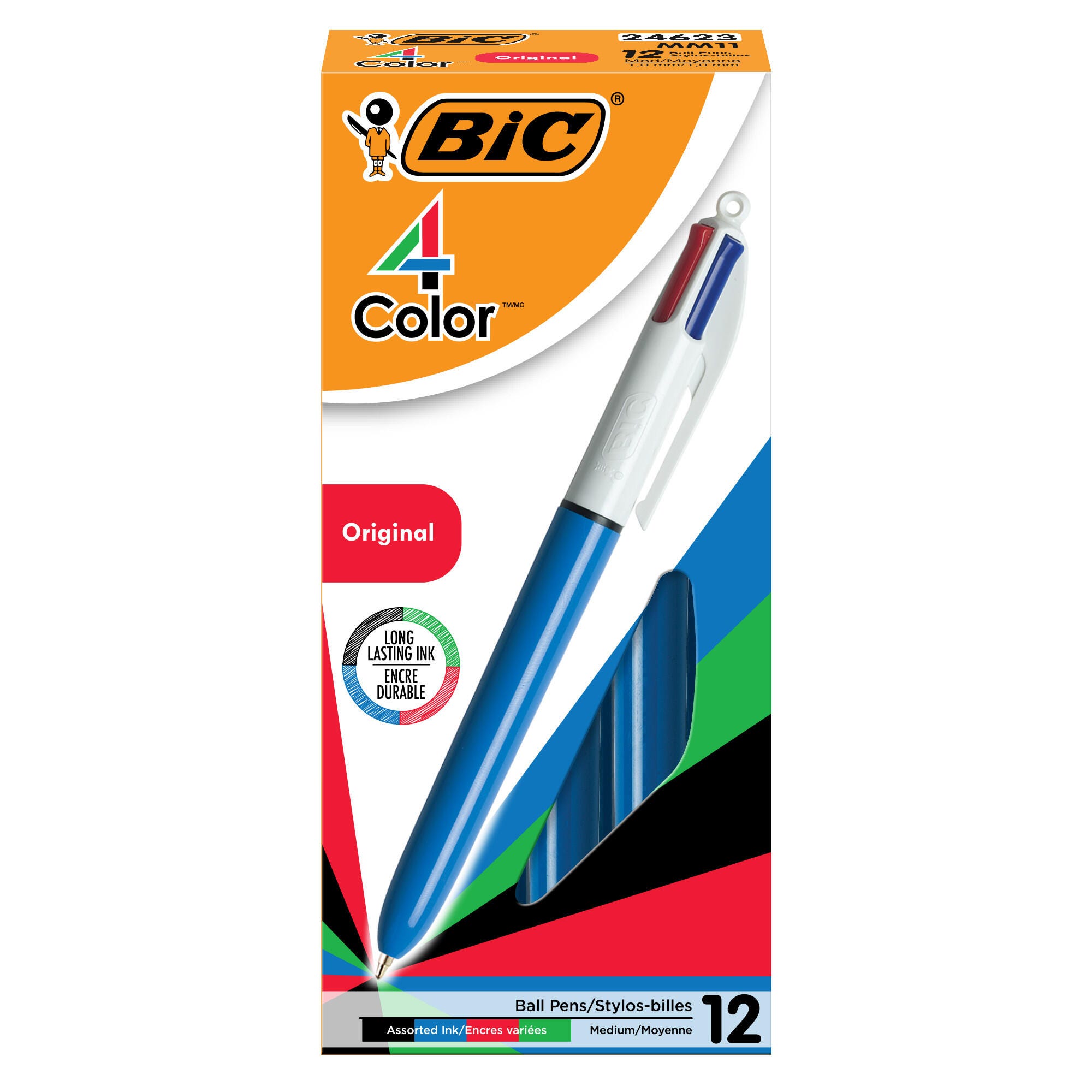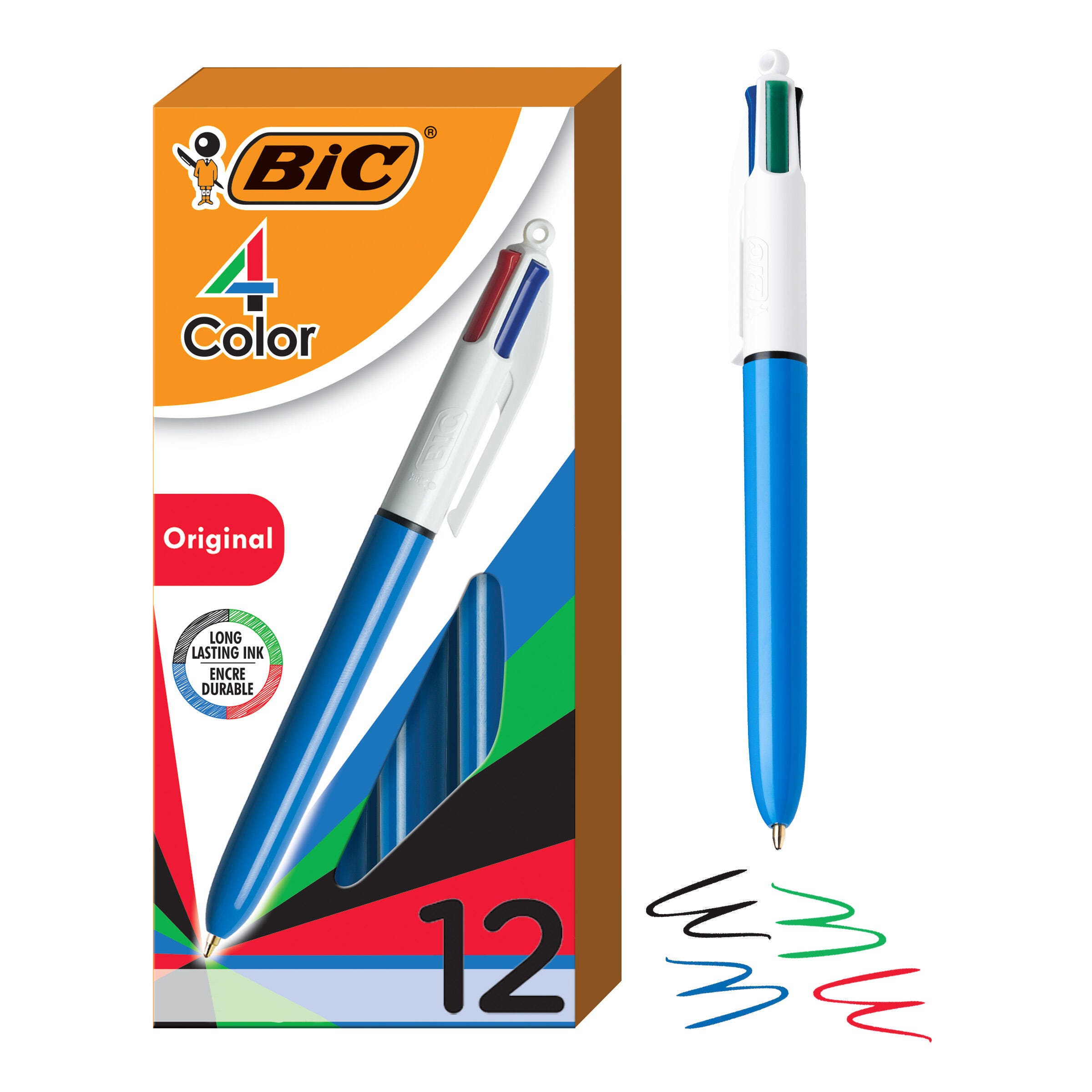 The BIC 4-Color Retractable Ballpoint Pen is specially designed for correcting papers and general record book entries. The single pen features 4 different inks—black, red, blue, and green—simply push down and click the color-coded buttons to select your color. The blue and white barrel adds a stylish touch suitable for students and professionals alike.