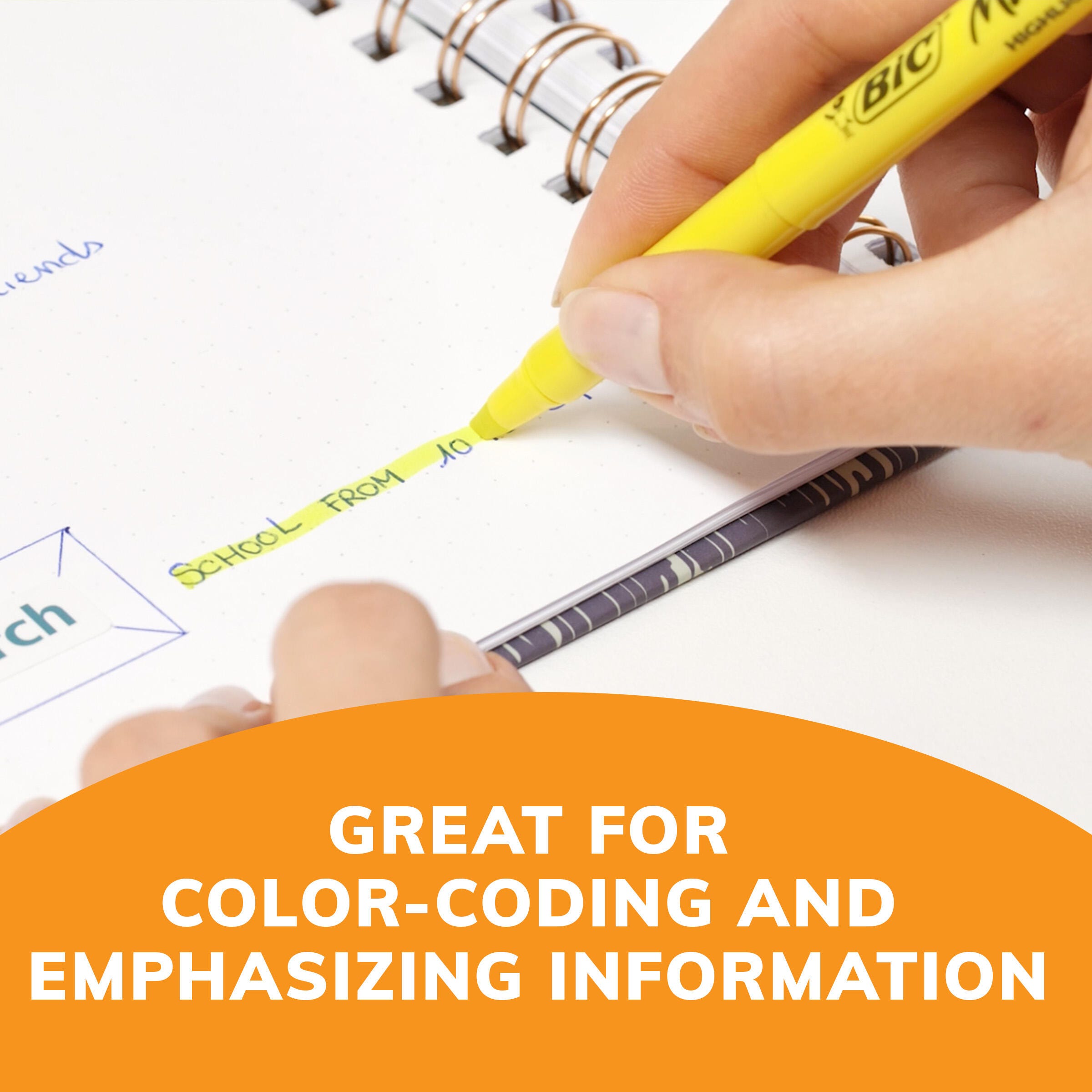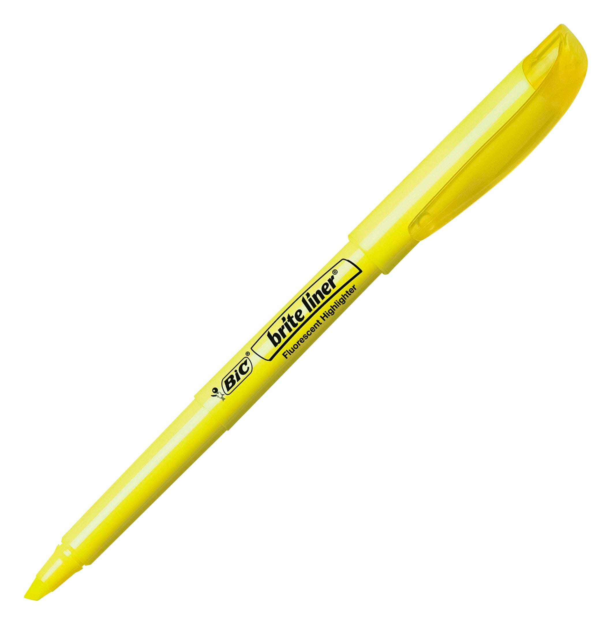 The BIC Brite Liner Pocket Style Highlighter features a durable chisel point tip that makes it easy to highlight in neat lines with a consistent width. The translucent yellow ink pops right off the page without covering or smudging highlighted text. A pen-shaped design provides an easy and comfortable grip. A must-have for any classroom or office that brings color to reading and organizing. Sold with 24 per pack.