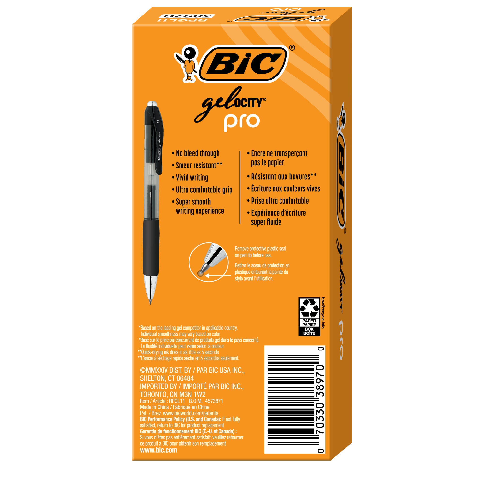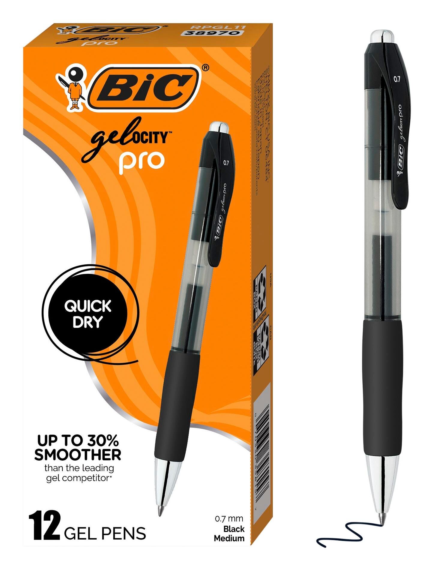 BIC Gelocity Pro Gel Pens, 0.7 mm, Medium Point, Black, Pack of 12