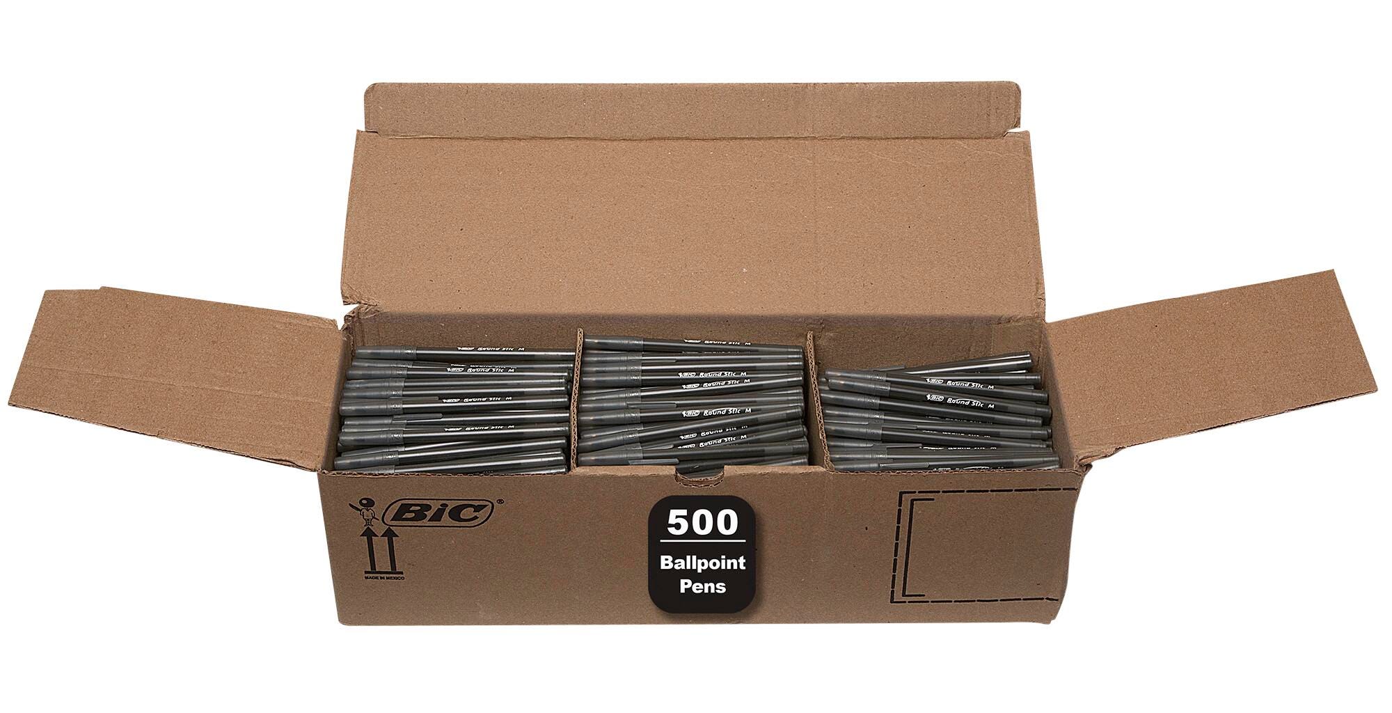 BIC Round Stic Xtra Life Black Ballpoint Pens Medium 1.0 mm, 500 Count Bulk Pack