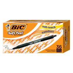 BIC Soft Feel Retractable Pen, 1.0 mm Medium Tip, Black, Pack of 36
