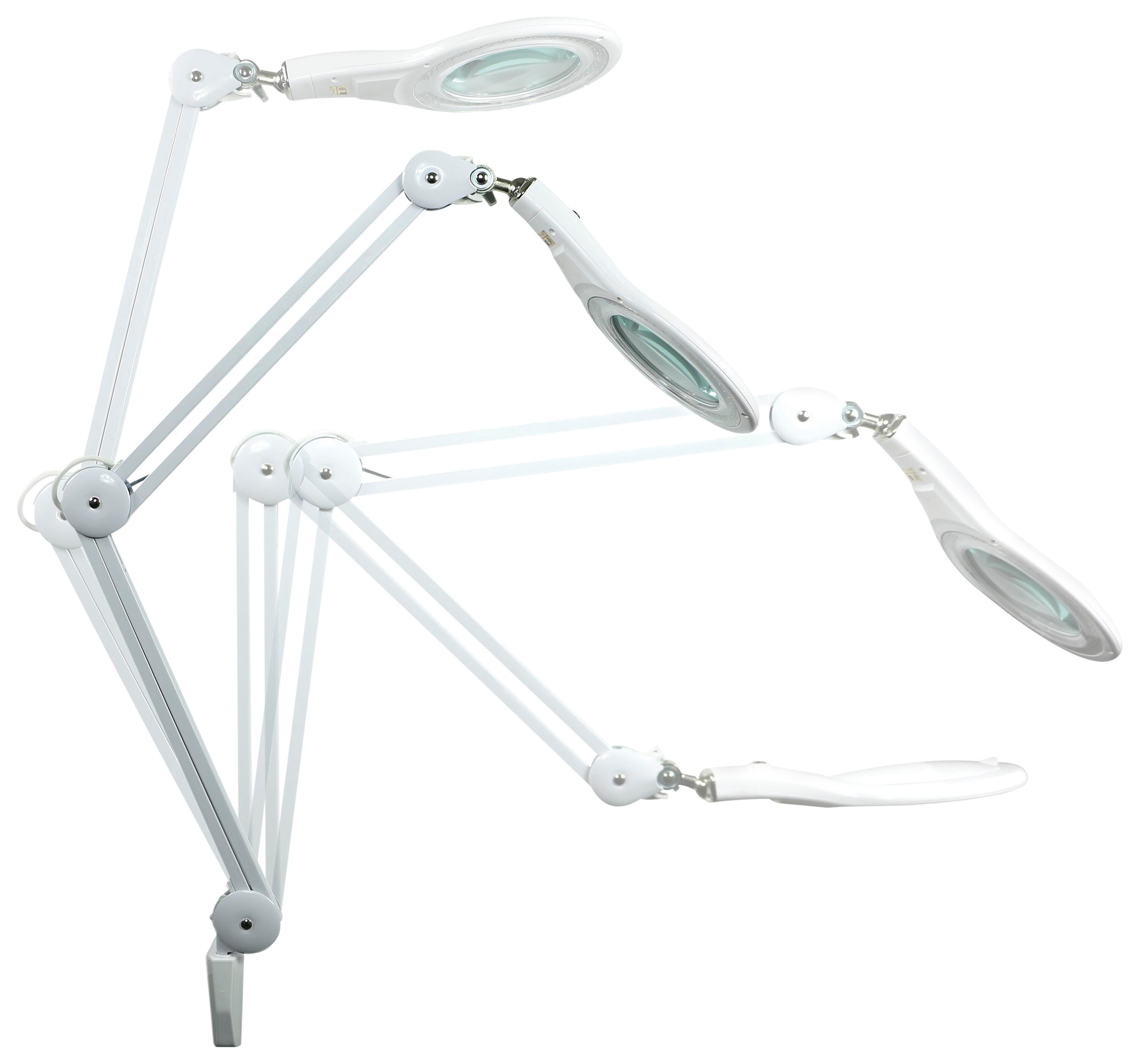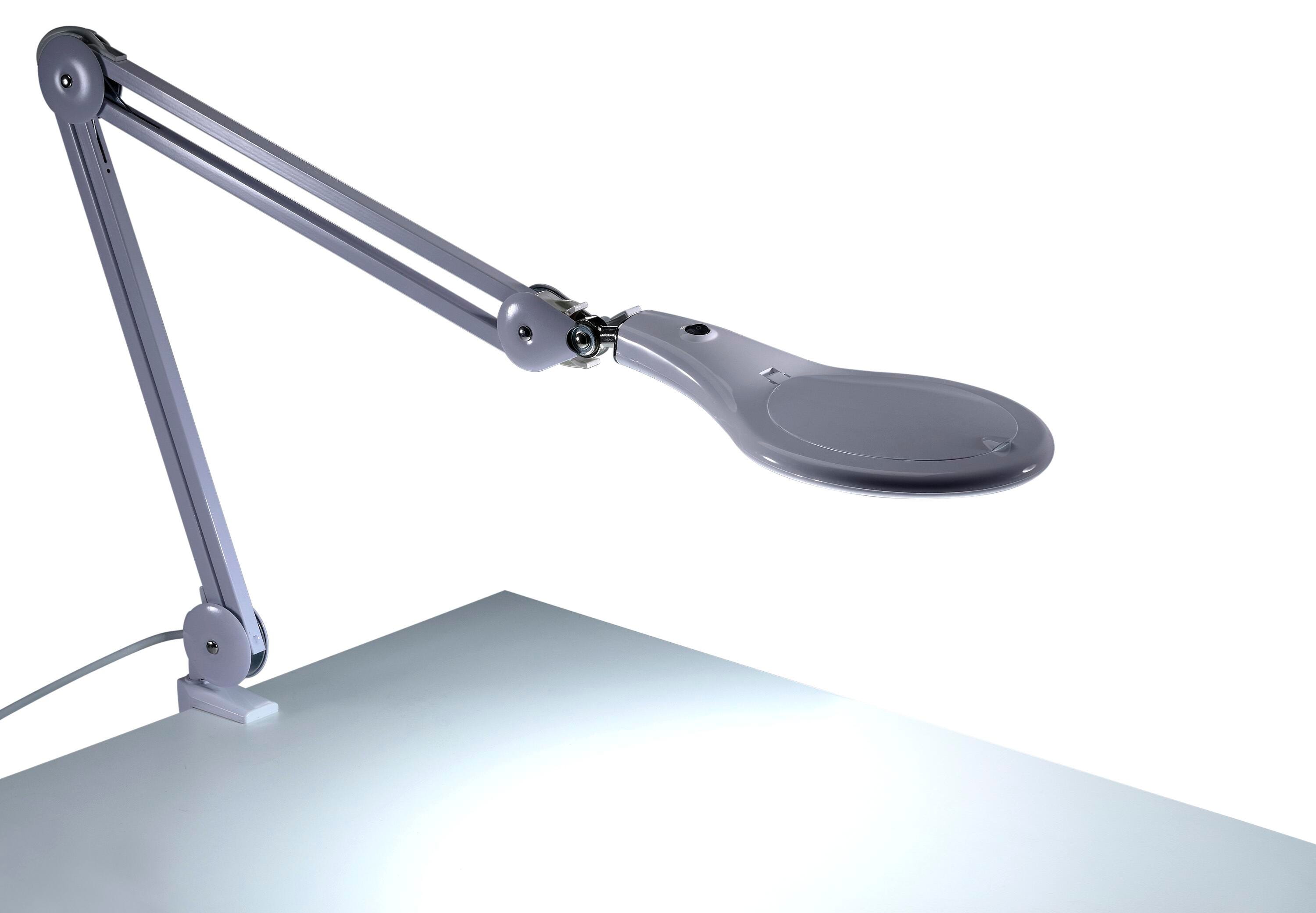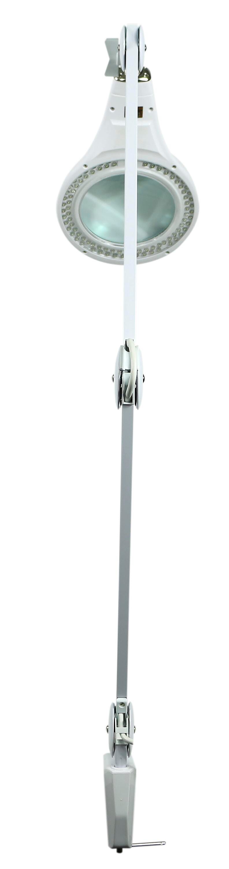 Move, adjust and identify even the smallest of elements with this high-powered magnifying desk lamp. Featuring a brightly illuminated 5 inch, 3-diopter glass lens, this magnifying desk lamp is ideal for viewing intricate details at a practical range. Flexibility is no problem. Its extensive 45 inch reach and adjustable lamp head allow for ultimate range of motion. It's ideal for crafting, engineering and other detail-oriented tasks. An easy-to-use clamp base allows for quick attachment to the sides of tables, desks and more. This feature is perfect for saving valuable space. Even better, it uses cost-efficient LEDs that last up to 50,000 hours and use 85% less energy than incandescent lamps.Features