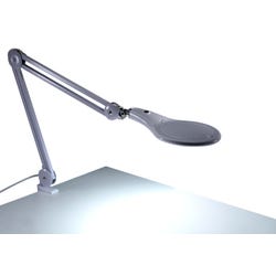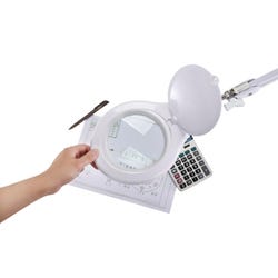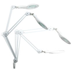 Move, adjust and identify even the smallest of elements with this high-powered magnifying desk lamp. Featuring a brightly illuminated 5 inch, 3-diopter glass lens, this magnifying desk lamp is ideal for viewing intricate details at a practical range. Flexibility is no problem. Its extensive 45 inch reach and adjustable lamp head allow for ultimate range of motion. It's ideal for crafting, engineering and other detail-oriented tasks. An easy-to-use clamp base allows for quick attachment to the sides of tables, desks and more. This feature is perfect for saving valuable space. Even better, it uses cost-efficient LEDs that last up to 50,000 hours and use 85% less energy than incandescent lamps.Features