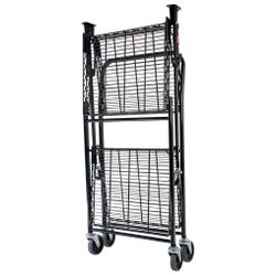 Storage space and location is the number one user issue with current cart designs. Our Bostitch® Stowaway™ Folding Carts have a patented folding design that stores away in 4x less space! An optional wall mount bracket allows for easy storage behind a door or in an open space. It folds and unfolds in a fraction of a second with secure safety locks for the strongest durability. Dual shelves provide 800+ square inches of storage space and can hold up to a massive 400 pounds of storage capacity. Durable black finish for easy cleaning and lifetime durability with six, medical style no-mar swivel wheels for quiet operation and easy maneuverability.