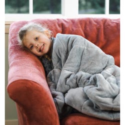 The gentle deep touch pressure of the weighted blanket makes kids feel more secure and helps to relieve stress and anxiety, enabling them to relax during the day and sleep better at night. Blanket weighs 10 pounds and measures 65 x 45 inches; optimal for children who weigh 70 pounds and above.