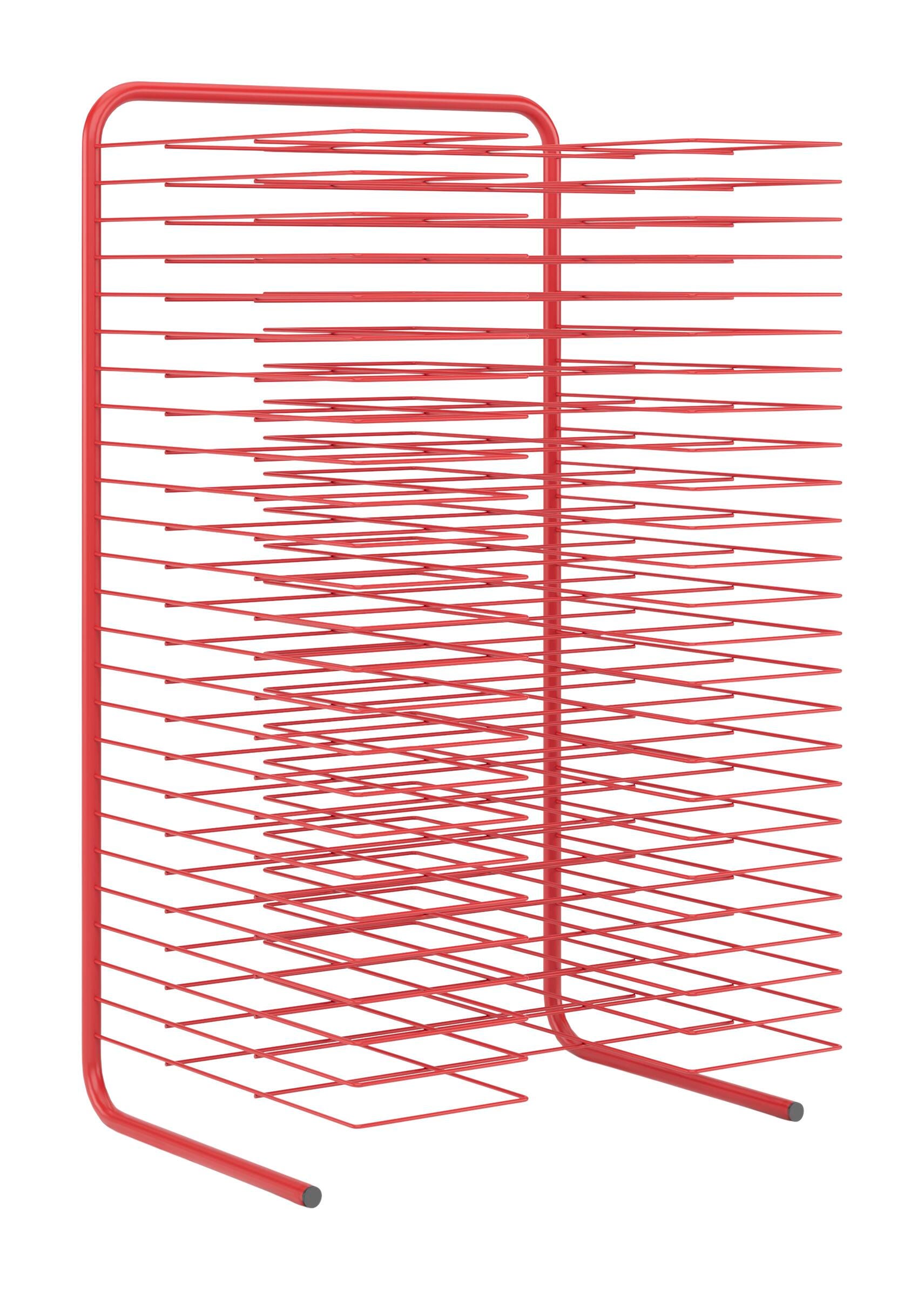 Bulman 25 Shelf Drying Rack features a vibrant red powder coat finish that makes it a standout piece in a room while also protecting it from corrosion and making it resistant to scratches and other light abrasions. The drying rack sits on glides to make relocating the rack easy while fully loaded or to relocate when transitioning into new projects. The 25 shelves provide ample space to store projects while plenty of space between shelves allow airflow for quick and efficient drying. Full rack measures 25-1/2 L x 21-3/4 W x 40 H inches.Features