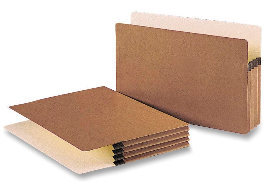 Sturdy file pocket manages bulky records with an accordion design that easily allows expansion. 3-1/2 inch expansion holds up to 800 sheets. Durable, rollover reinforcement at the top of the gusset makes the sides virtually tearproof. Drop-front style offers easy access. File pocket is made of redrope stock.