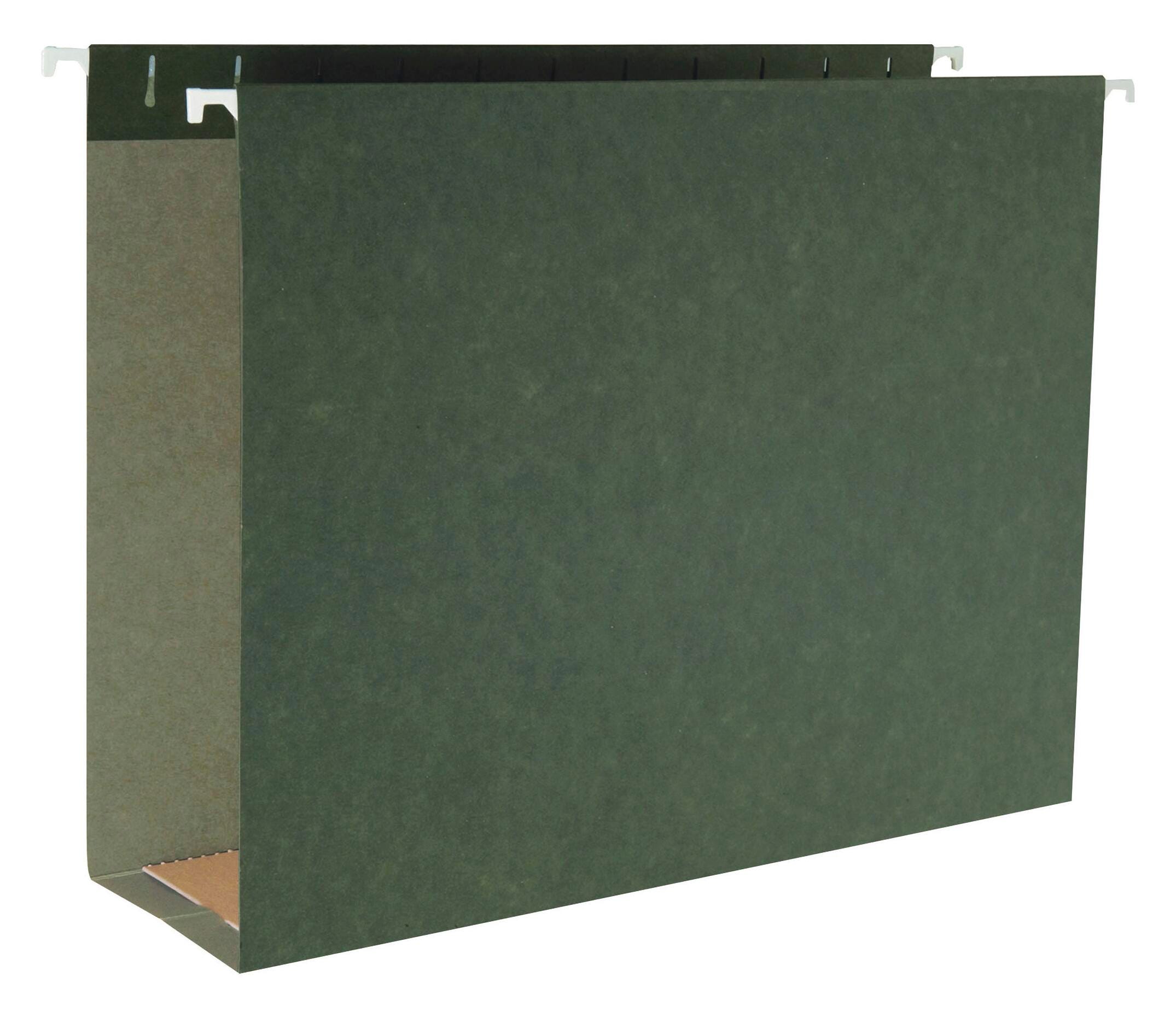 Hanging Box-bottom File Folders offer an advanced design with a pressboard reinforcing insert at the bottom. Ideal for handling a variety of bulky records and letter-size documents. Each hanging file folder includes tabs and inserts. Simply slip the tabs into the pre-cut slots on the inside of the folder tops. Folders contain post-consumer recycled material.