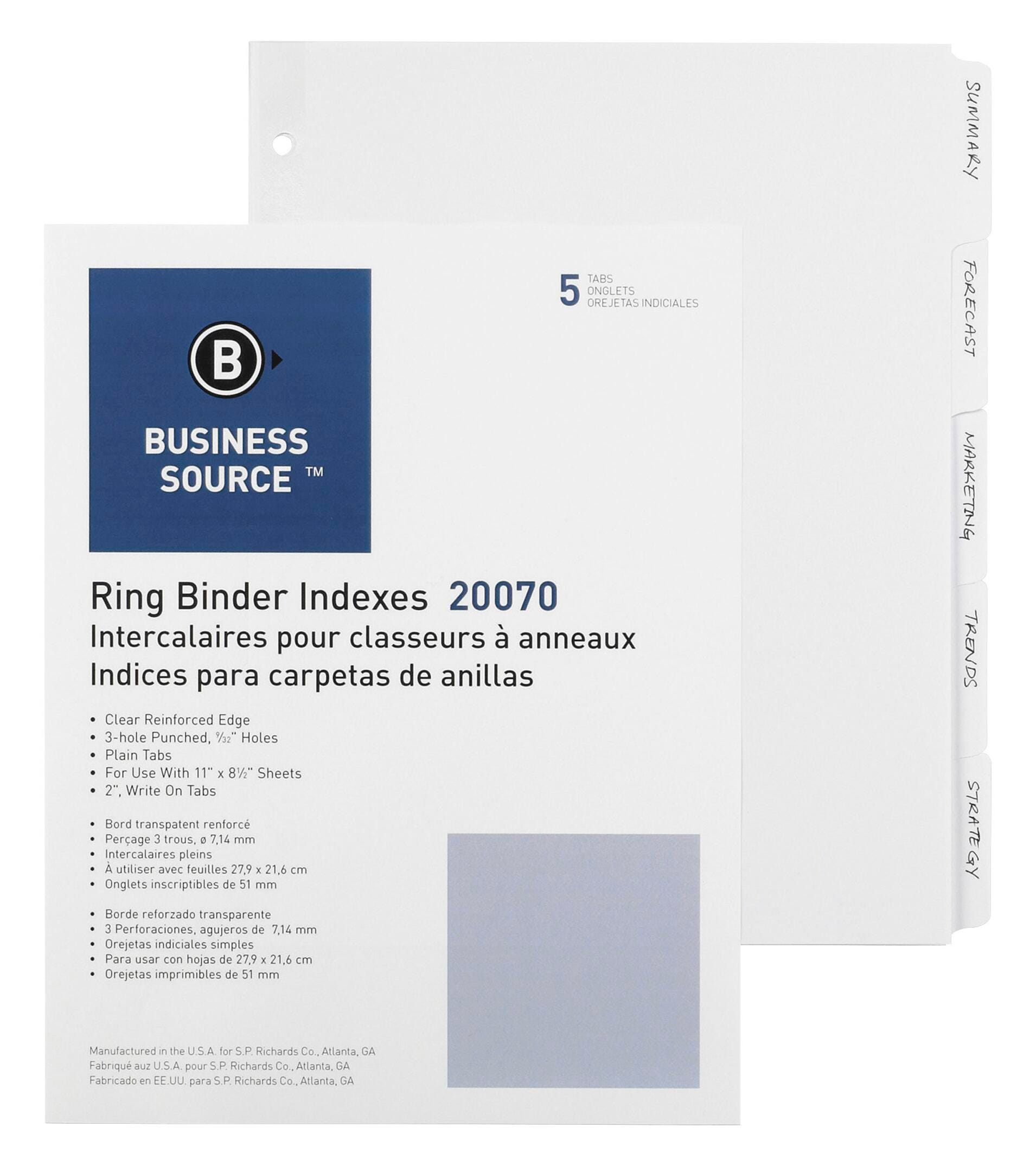 Business Source Plain Tab Indexes, 5 Tab, White, 100 Sets