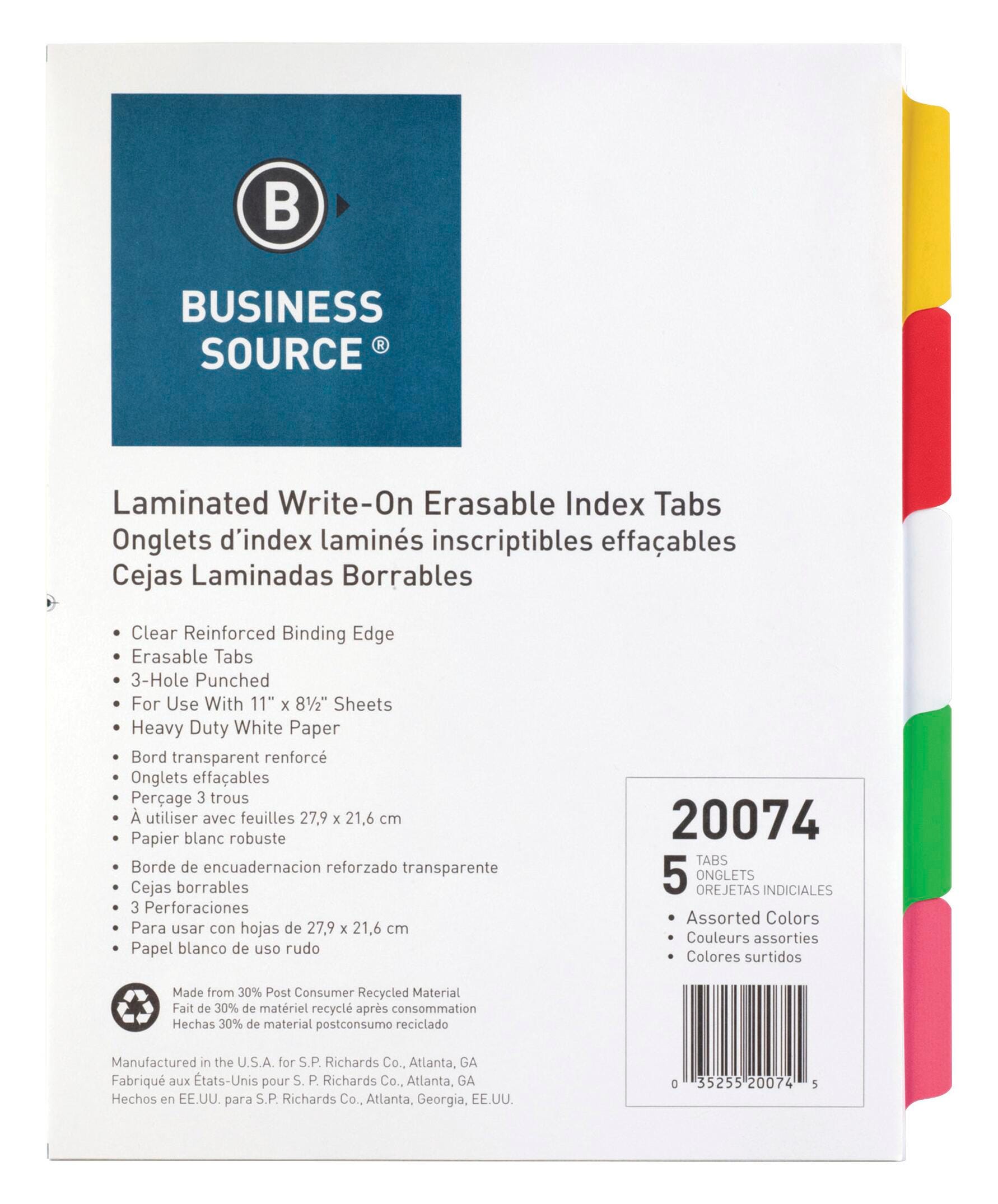 Business Source Write-On Tab Indexes, 5 Tab, Multi-Color