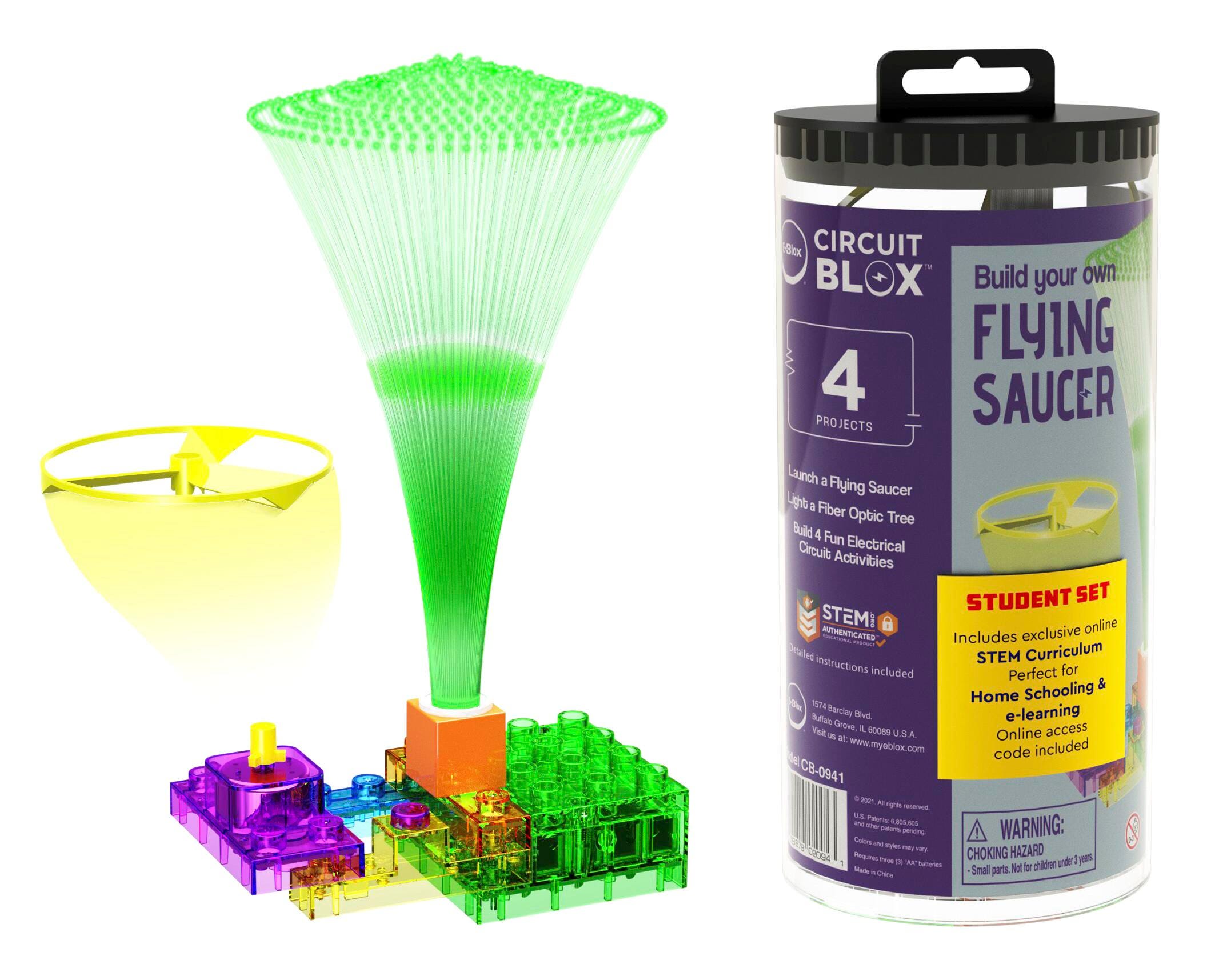 This set is ideal for home schooling and teaching through e-learning of STEM. The colorful building blocks contain electronic components such as a battery module, switches, LEDs, and a motor. Includes online animated curriculum only available with E-Blox Student Sets. Lessons cover Electricity & Circuit, Motors & Flying Saucers, Light, Switches, Telecommunications & Morse Code.Features